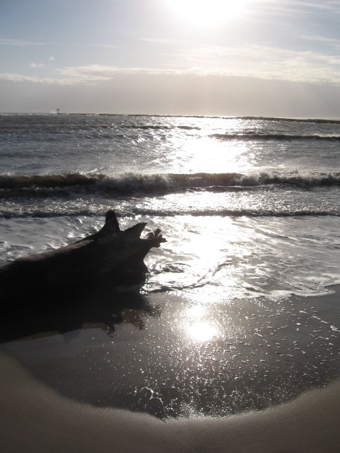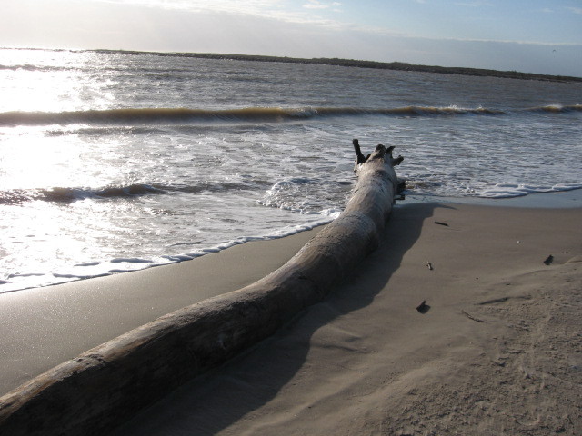 We stood around this log for a good while watching the tide come in. When I (this is John) was a child on vacation one time, I was debating walking into the ocean. I told my dad I'd wait until the waves stopped coming. Dad pointed out that I'd be waiting a long time. One could get lost in time, there on the beach, growing old, still waiting for the waves to stop coming....