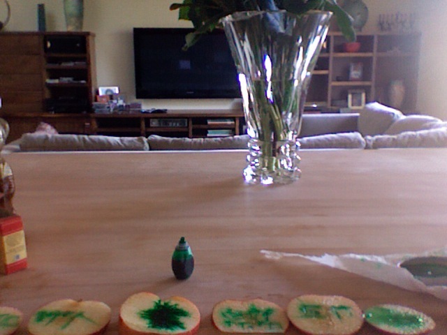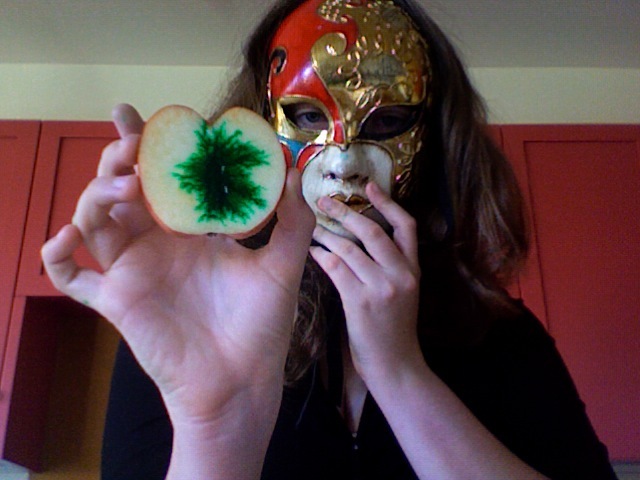 i love the way the food coloring looks unadulterated by honey; it spells out all the little veins in the apple.