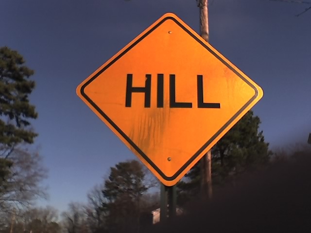 A wonderful sign discovered while exploring the city. "Oh noes! Look out for that wild HILL ahead of us, Aaron!"