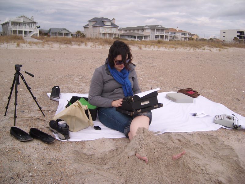 What did we do? We headed out to the coast on a road trip, just to use this stolen sign to label the real coast effectively! We decided this, of course, spontaneously, at 11:30 pm on Friday, February 22nd. After gathering some supplies (Our typewriters, lots of music, snacks, a ukulele, some layers of clothing, sheets, blankets, a balloon representing the spirit of Crazy Child, and a tripod) we were off!