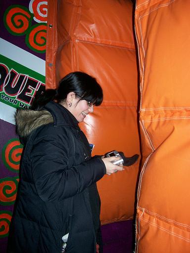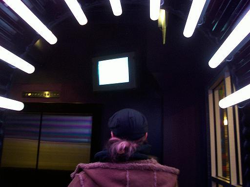 I got in front of one of them and pretended like my coat was being blown off by the air, and Zer0gee tried to do the Marilyn Monroe thing with her skirt but the material was too heavy and the jet was at the wrong height to really make it work. At the end of the hallway was a spinny star-tunnel which had a sign warning of cougars if you touched the sides.