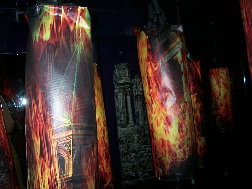 After that you go into this room that's all about the Chicago Fire and there's 30 or so punching bags that are painted with flames hanging from the ceiling.