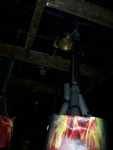 You have to run around punching them to find the one that sets off the fire bell. We ran around like goons bumping into all the bags. I finally found the one that set off the bell, and when I looked up I realized that the bell was actually attached to the chain that the bag was hanging from. You could have gone directly to that bag if you had looked up. *snerk*