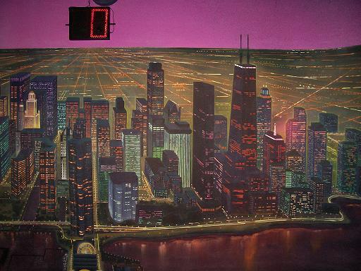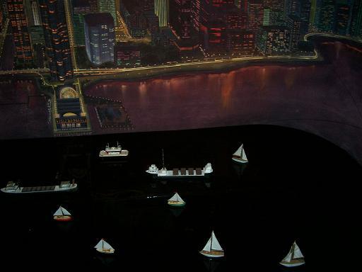 That's Navy Pier on the upper left. Lights on the ceiling of this room created reflected fireworks in the "water" below.