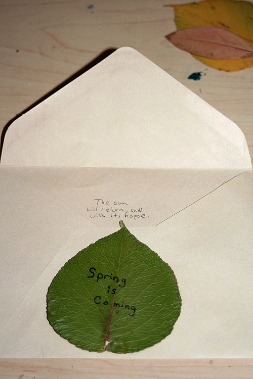 For quite a long time I found myself at a complete mental block on this task, unable to compose positive fortunes I could honestly believe in. It is surely no coincidence that after January 20 I began to conceive of a few honestly happy or magical words to leave behind for random passers by. With one small first message composed, the mental floodgates opened. Not contented with simple scraps of paper, I devised my fortunes in a somewhat more whimsical manner and hope that people decide even one is worth keeping.