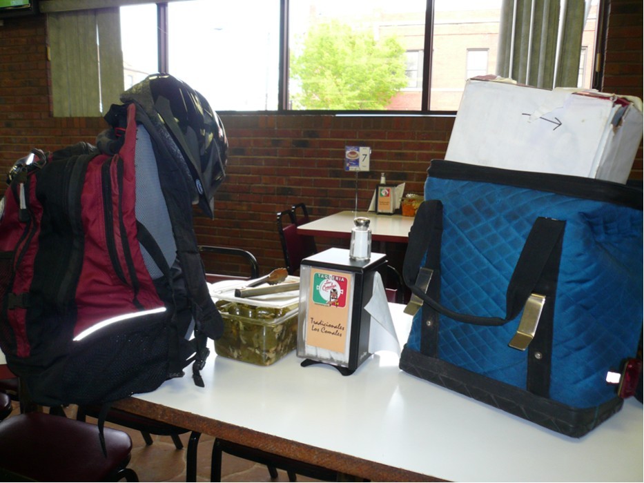 I packed up my entire collection of hats and wigs. I was surprised that i could fit them all in one manageable backpack and a box which could be strapped to the back of my bike.
