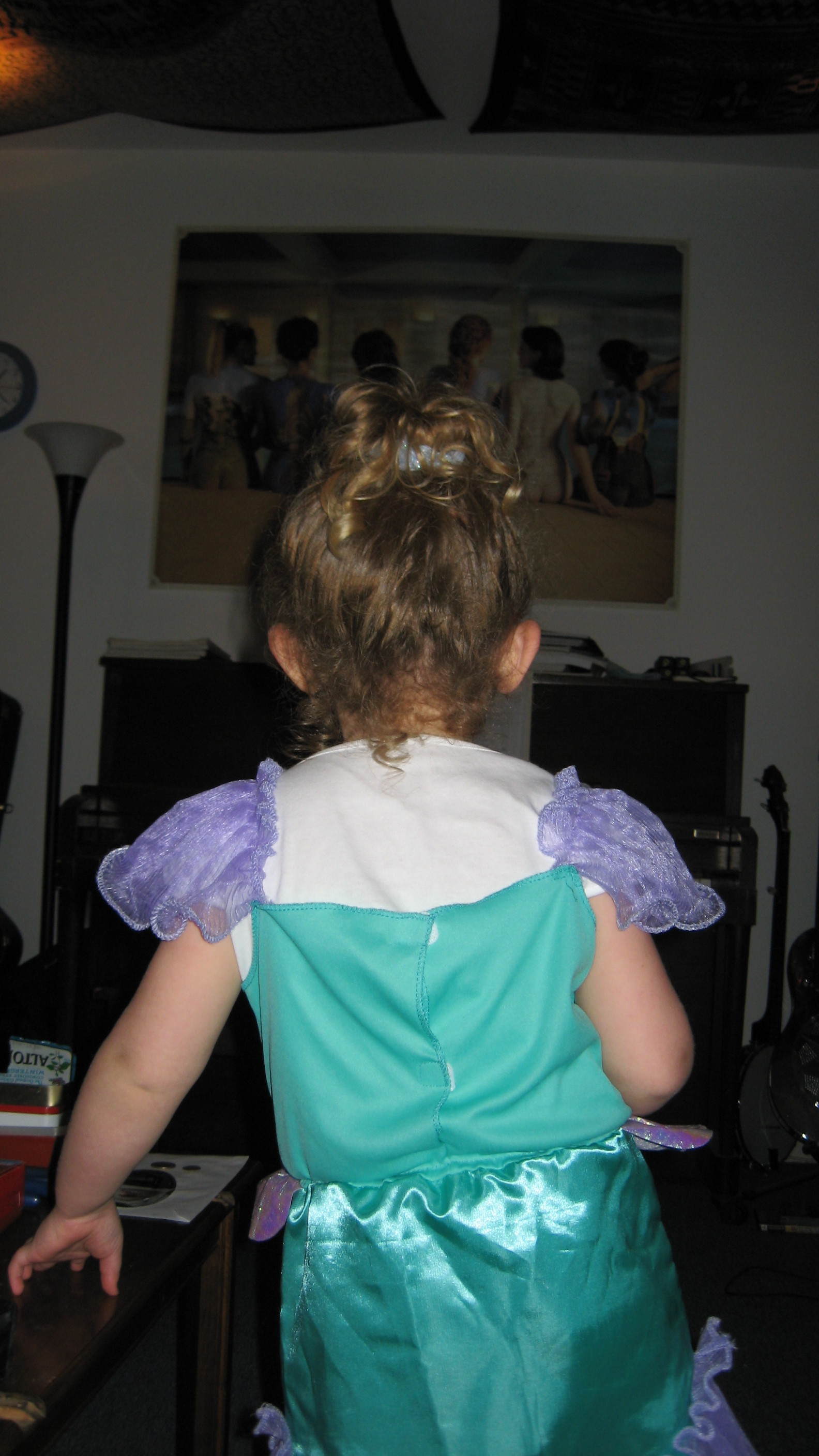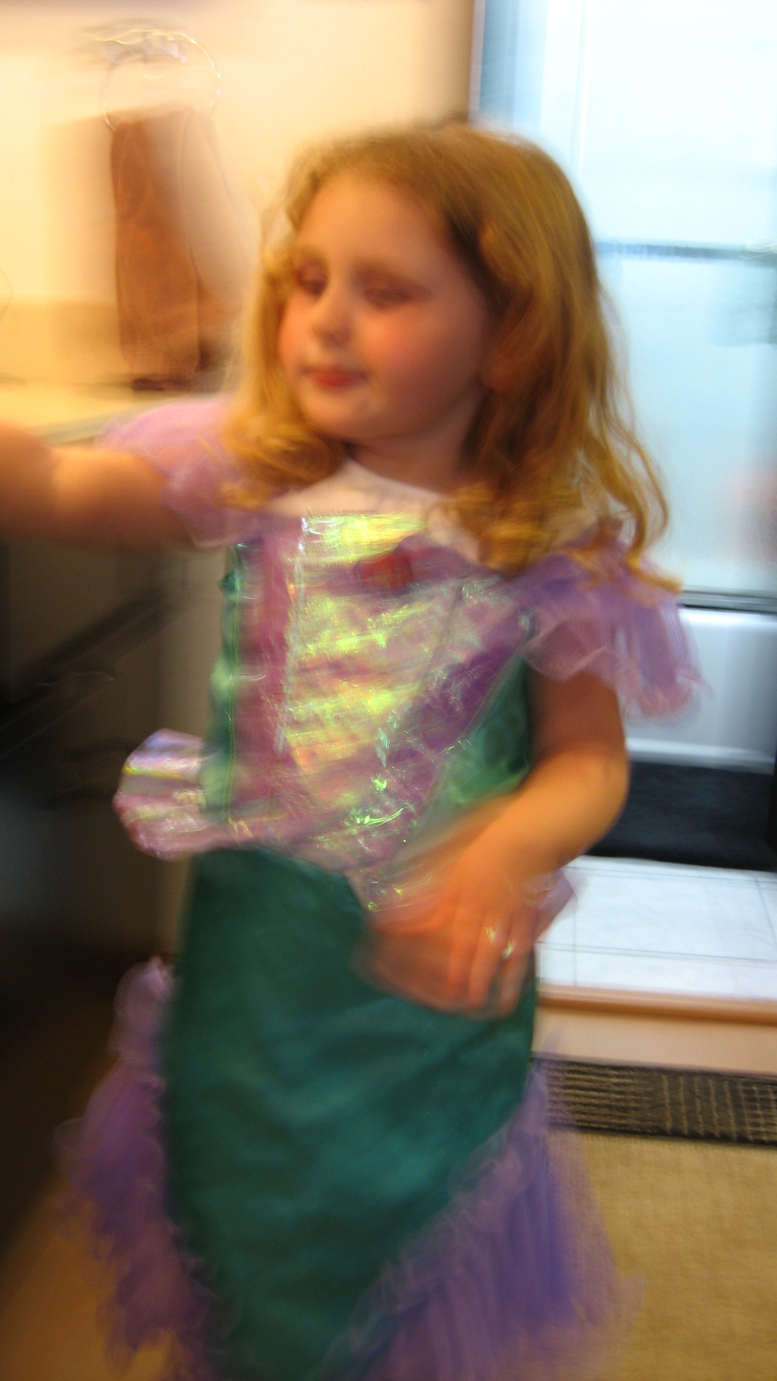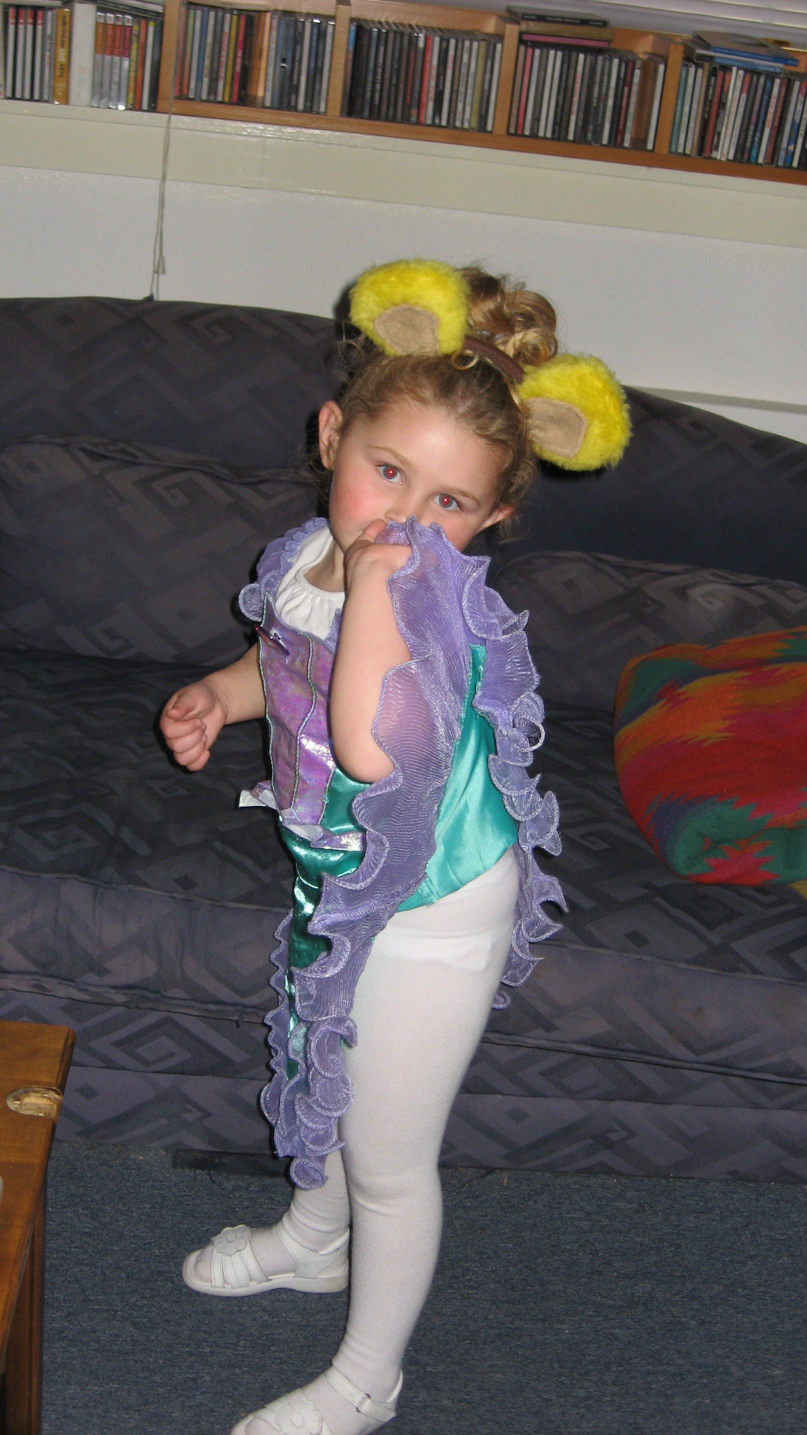 August 30th, 2007 10:50 PMAfter quite a decision making process, she decided that she would masqerade as Ariel from the Little Mermaid and I should wear her wings and boa....making me a....fairy? That was fine with me, any excuse to wear wings is worth it in my mind. With treat bags in tow, we were on our way.