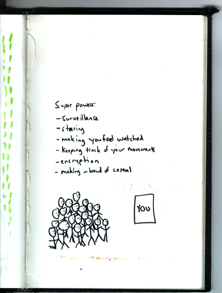 Super power: -surveillance -making you feel watched -keeping track of your movements -encryption -making a bowl of cereal