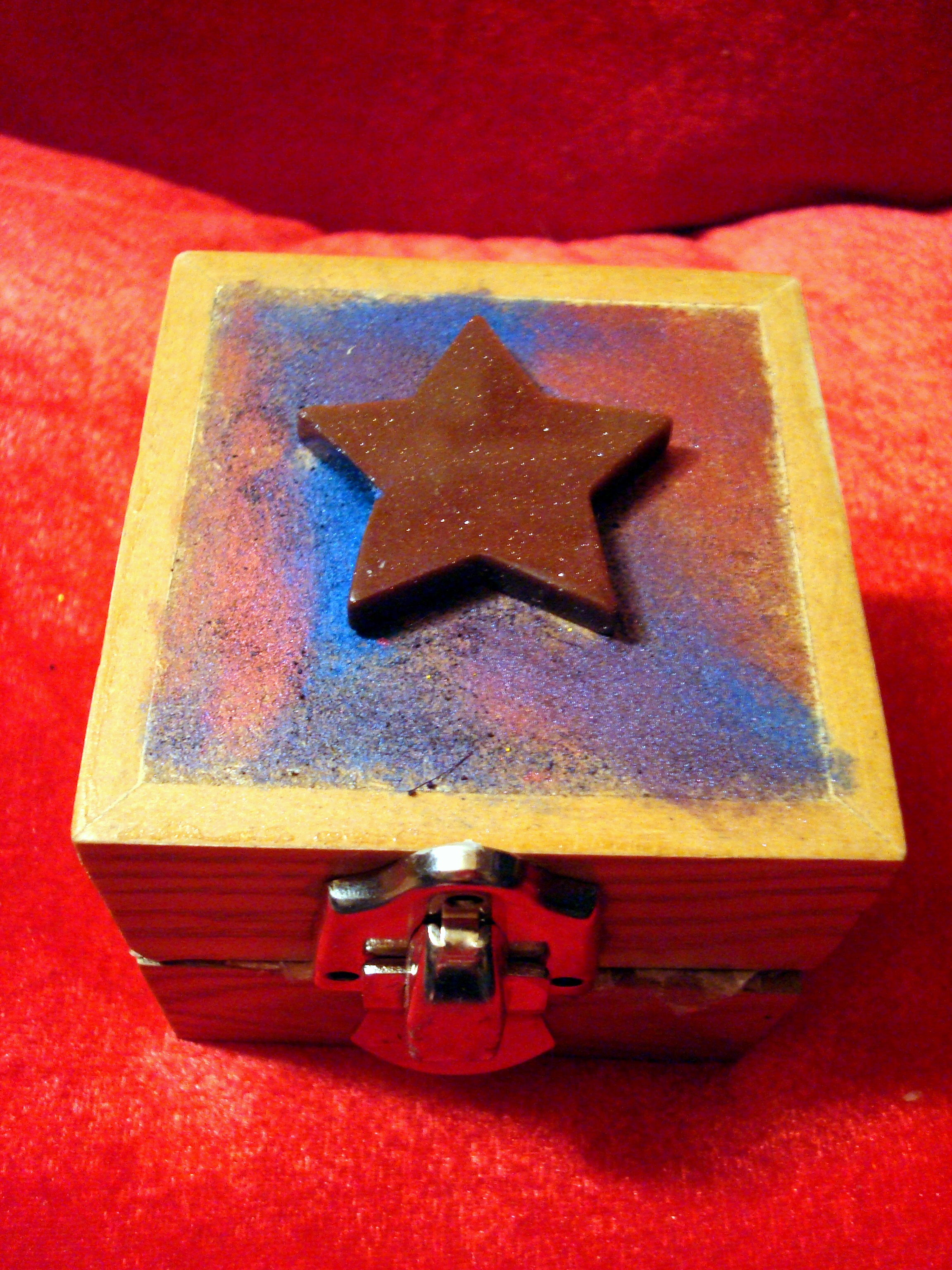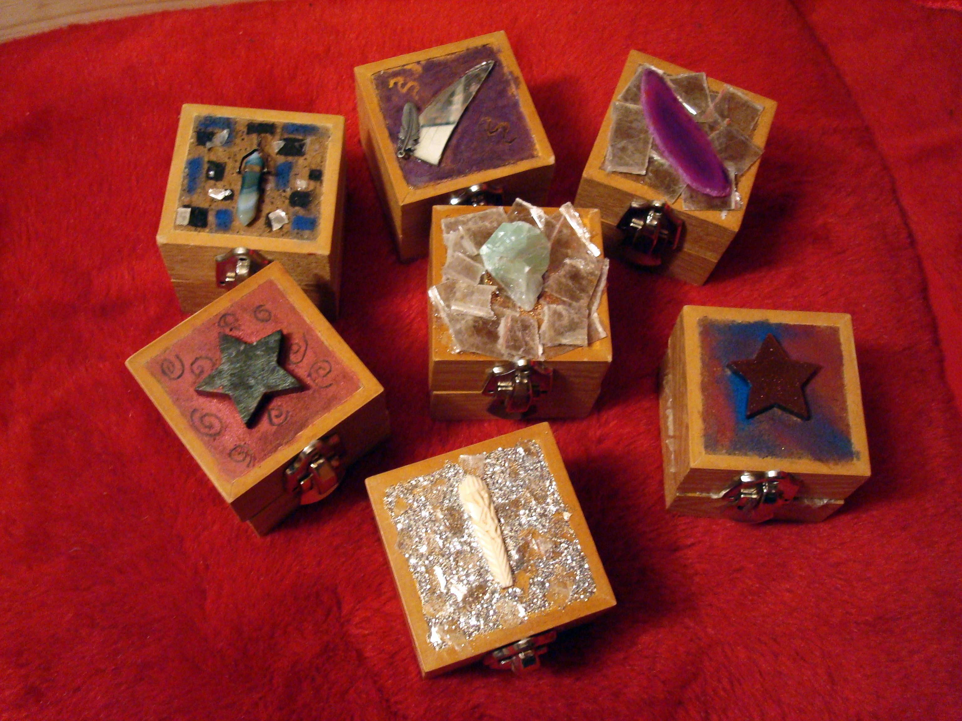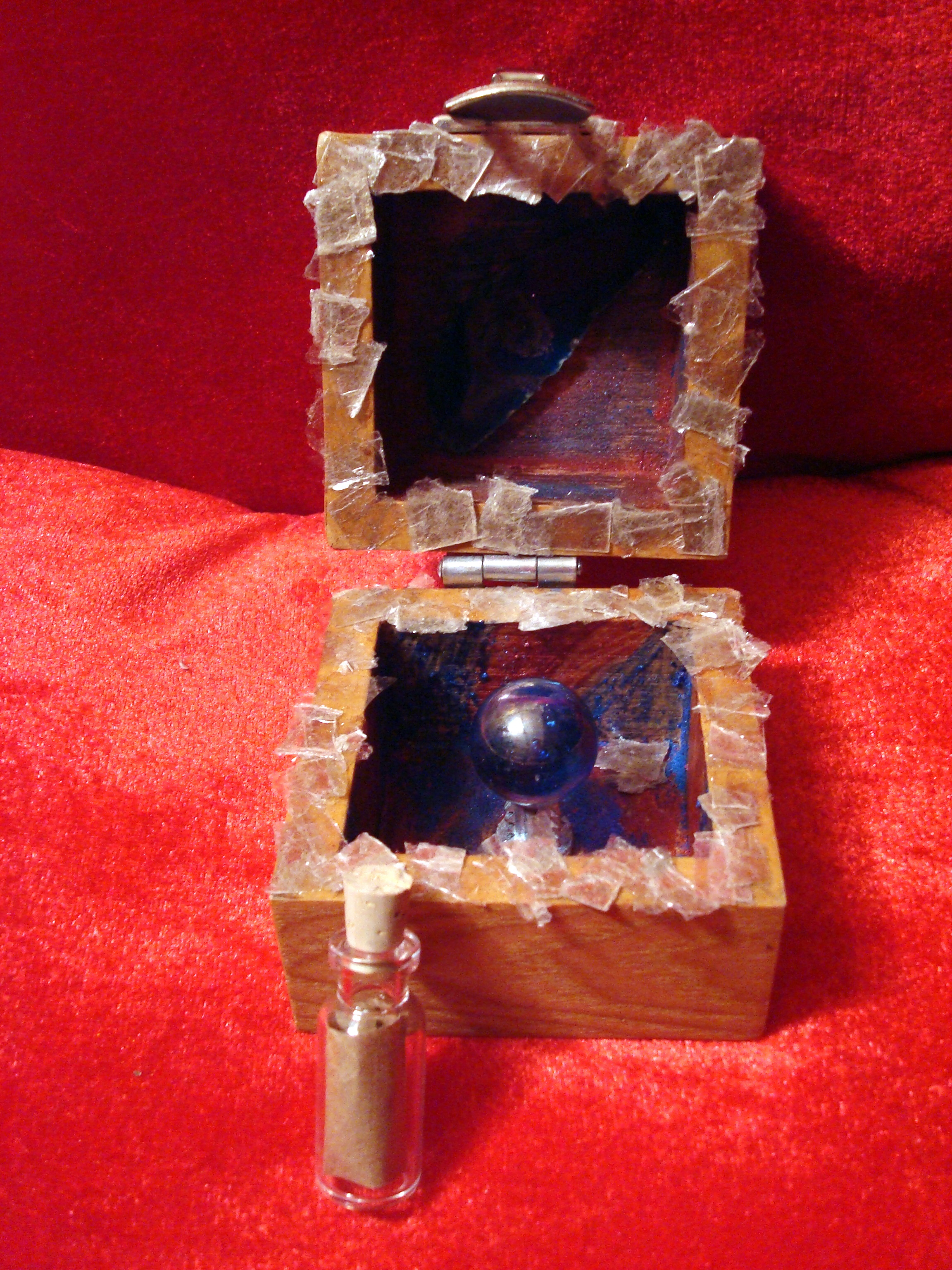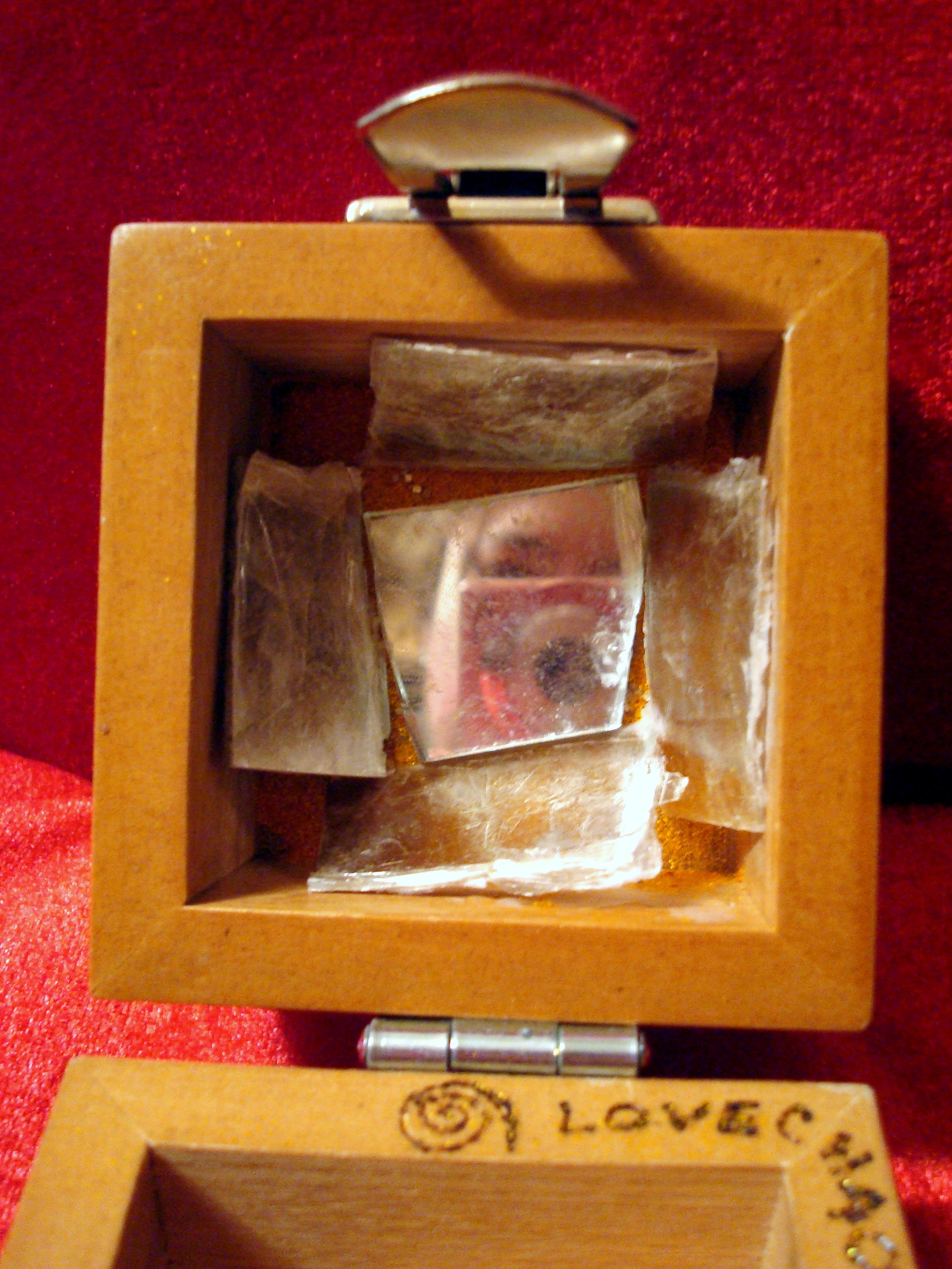 I wanted to make boxes worthy of holding dreams, of holding scrap paper reminders of childhood hopes, or rings from past lovers, or pennies found on the ground during truly lucky days. I wanted them small and easy to hide, built of sturdy wood frames with silver hinges and clasps. I wanted them to shimmer and sparkle and reflect and reflect. I wanted magic boxes.
