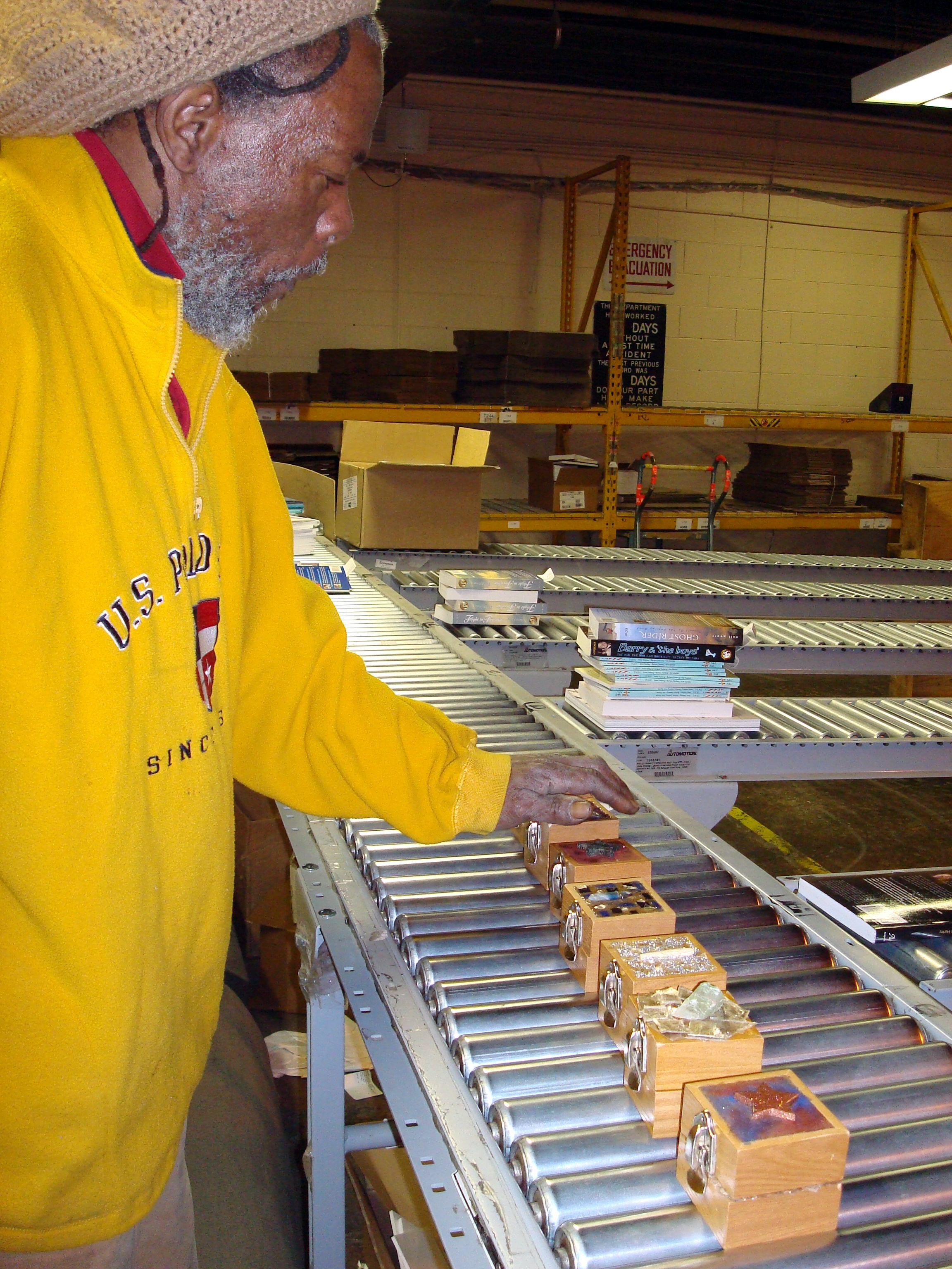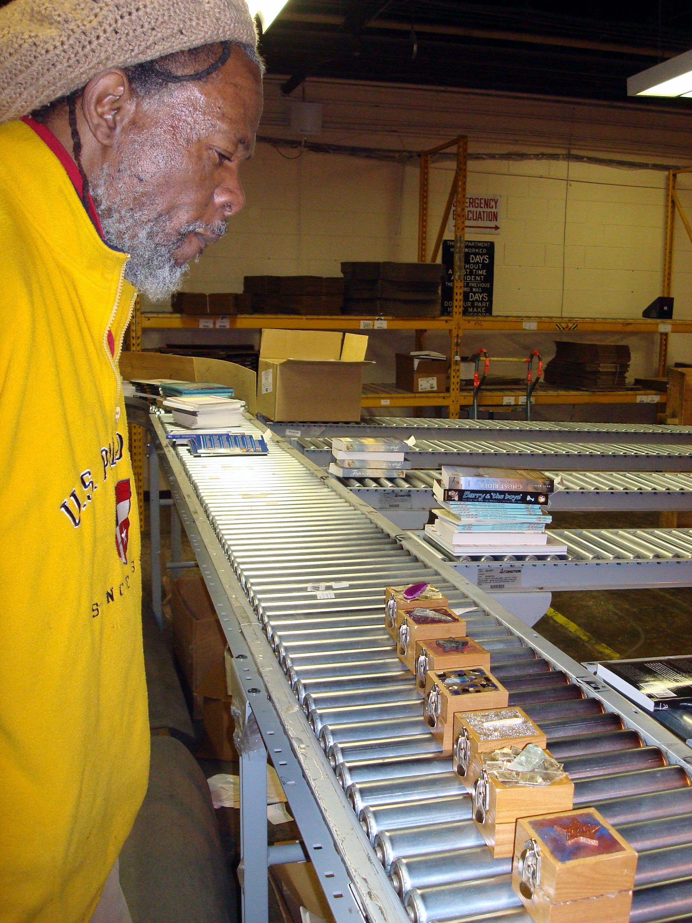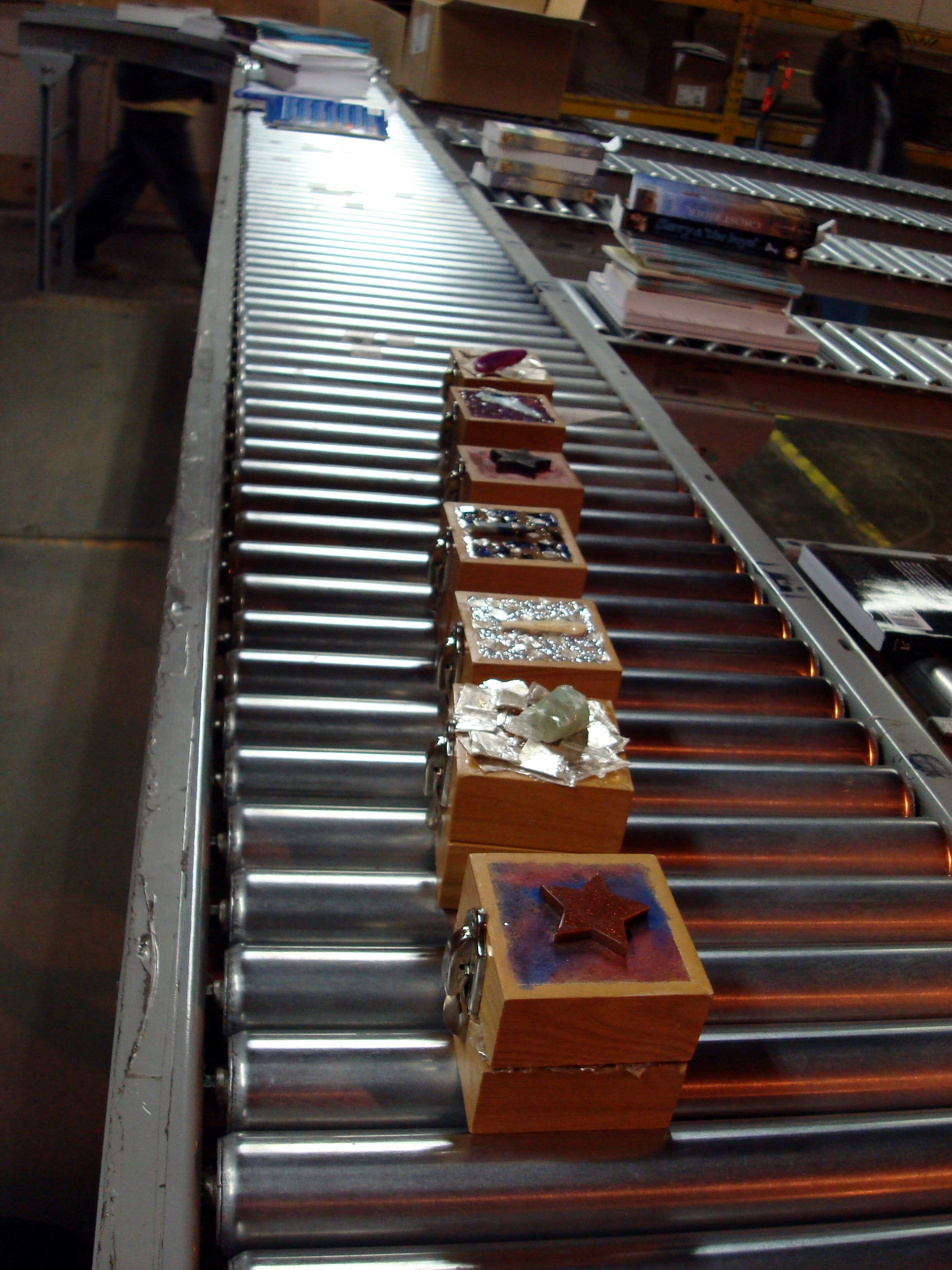 So I brought the boxes to work and near the end of lunch break I laid them out of the conveyor belt where he works: