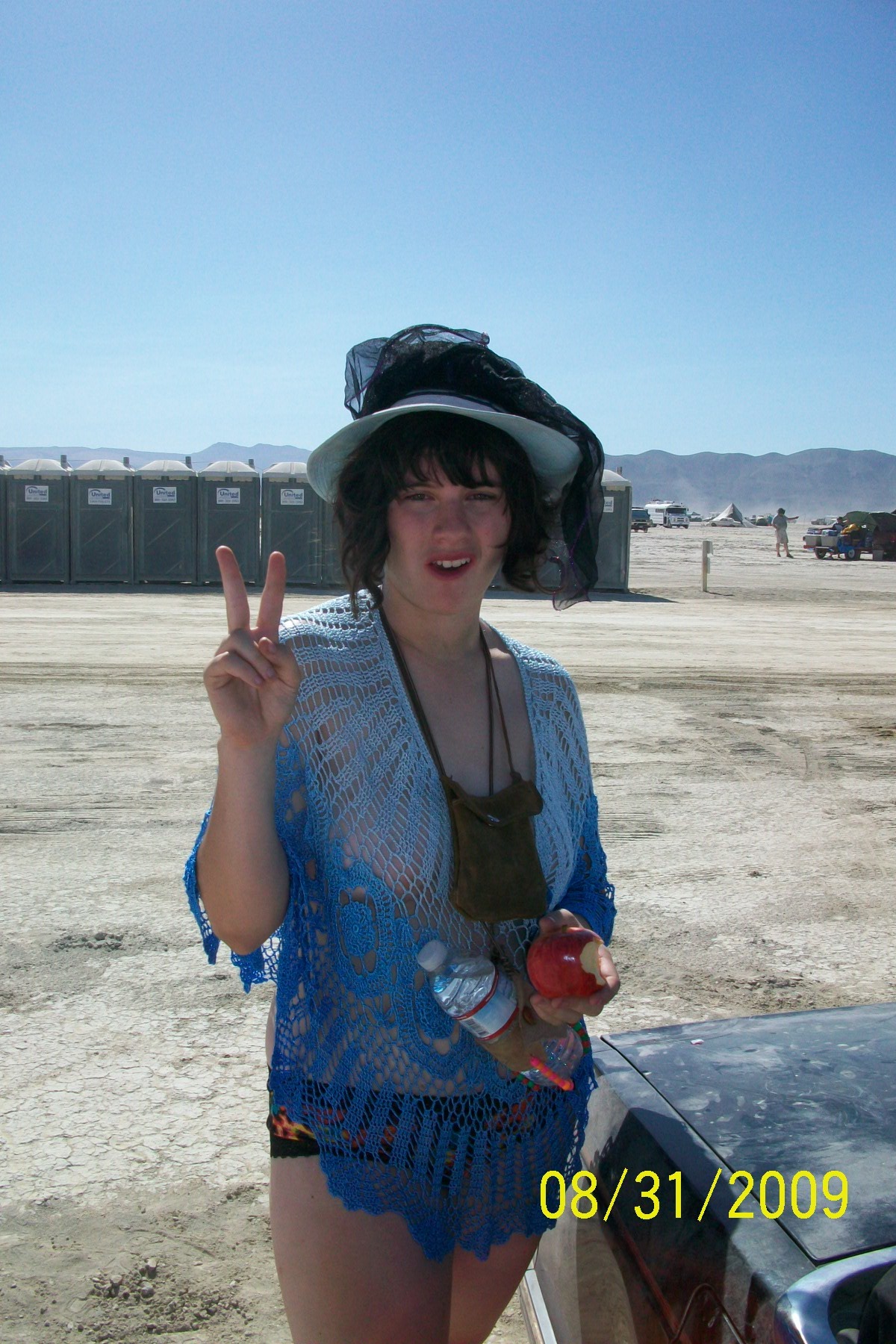 i had a long journey to the desert ahead of me, i needed money so i found a job. i became the night guard for the tnt fireworks company so i could afford burning man. i worked every single night for two months straight during the hours of 8pm to 4 am. though i could hardly call it work, most nights were spent having empty lot dance parties or shooting a bb gun at street lights. after the work was finished i was allowed to take as many fireworks as i wanted and was payed nearly 2000 dollars! i stll have a garage full of fireworks.from late july to august most of my time was spent prepping myself and getting supplies. when august 25th hit i left for tahoe, i have a place up there where i can go and stay! we had a long hot drive up to tahoe. where we did some final prepping and on the 28thweset offfor what would become home for me. we stopped at a large walmart in reno to settle and buy dry ice. from there we drove another three hours through reservation land and finally to black rock city. we had to stop at the gates get out of our car and do playa angels in the dust the greeter gave us a hug welcomed us home and let us ring the bell and continue. we made camp and watched the sunrise as we took our first bikeride on the playa. we had eight full days of love, debauchery, life and made firends we will never forget. i found my one and only true home on earth. we left reluctently the day after the temple burn headed back to tahoe. recuperated and decomped at the nude beach. stayed in tahoe for three days and headed back to the bay. im greatly looking forward to making the pilgrimage again