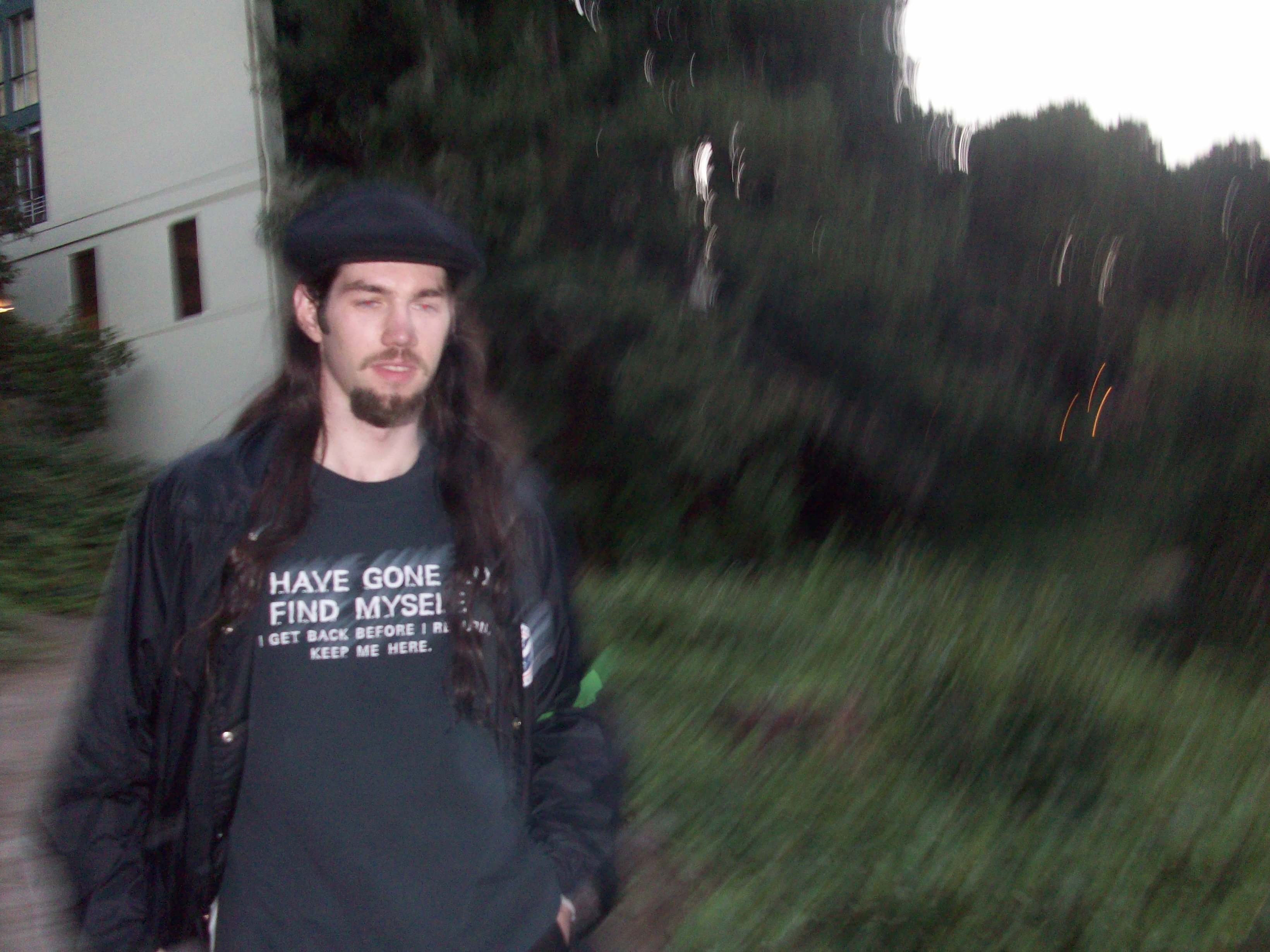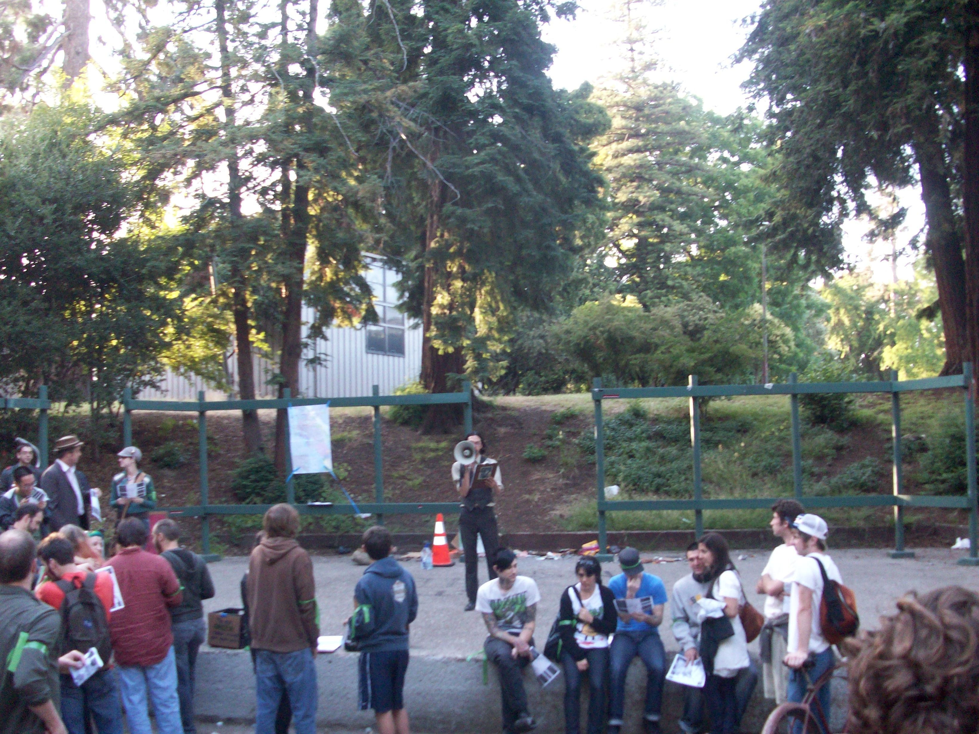 We started this amazing event like everyone else, at mosswood park. We arrived at the amphitheater around 7:10 pm and picked up our orange and green ribbons. After talking with some fellow players and signing the waivers we listened to the briefing and began our journey. Our first manuever to avoid the chasers was to jump a fence and take an alleyway behind Mosswood Park. The alley was filled with awesome graffiti pretty plant-life. As far as we know, no one else decided to go this way. After jumping another fence we emerged near Pill Hill and proceeded down Webster St. We turned onto 27th for about a block and then again onto Harrison. We took the Harrison fork onto Orange, followed it up to MacArthur and crossed under the freeway near the paintings of the giraffes. From there we cut into residential streets. On Chetwood we had our first encounter with a chaser. Luckily as we started to run back up the hill he was reluctant to follow. An older man in an apartment opened his window asked us if we wanted a clue for the second checkpoint. He told us that there was a pathway from Alta Vista between houses leading all the way down to Grand. We made note of this as we continued to the first stop. Near the entrance to the stop we joined up with two other players, whose names slip my mind. We made it to the first checkpoint in the awesome rose garden. The garden was extremely beautiful and we resolved to check it out again on another day. We met up with the gypsies and then journeyed on. Using the tip the man on Chetwood gave us we found the path between houses and followed it all the way to Grand. We didn't encounter any other players on our way. A few steps on to Grand a chaser jumps out of a cafe and takes down one of our party. Karson and I jumped down a side street and as far as we could tell, were not followed. We found a freeway overpass which led to a school. We could see the Grand Lake from the school, which meant we were close. We hopped the fence to get out of the school and made our way to checkpoint #2. Here we had our pictures taken with a lovely man in a dress. We took his picture as well. There we met up with our other team member and continued up a hill into a residential neighborhood attempting to avoid the chasers on lakeside. We succeeded and saw no other players the whole way down to 18th street. From 18th street we could see the Parkway Cinema, previous home of our Rocky Horror cast. Horrible things awaited us at the lemonade stand in Athol Park. Here I encountered my arch-nemesis, the durian fruit. Not only does it smell like a rotting corpse, it also tastes like some kind of mix between mayonaise, guacamole, and artificial sweetener. You can guess the texture. Vile, vile fruit. After this horror show, we drank our lemonade and ventured onto 2nd street. From here we cut down to Peralta Park and through Laney College. We proceeded directly into the 9th st. safe-zone, without seeing any chasers. While there, we both defeated the minotaur and even took a picture with her. Theseus don't got shit on us. We doubled back to Laney and got lost trying to get around the freeway. We tried to cut through what we thought was an office complex. We were unpleasantly surprised to find out that this was no office building. Suddenly there was a flashlight in our eyes and a command to turn around. It seemed we had stumbled into the police station. He searched my backpack and demanded to know what we were doing out there. We told him we were playing a game and I showed him my manifest. He mistook "journey" for geocaching. After everything was cleared up they allowed us to go with a warning to be safe. They seemed genuinely worried and suggested we carry a weapon ( pepperspray, namely). We then ventured down the Embarcadero, encountering absolutely no one. We started to become confused as to where the 5th location actually was ( the map looks like it is across the water). Luckily we ran into the umbrella people (the mobile safe-zone). They pointed us in the right direction and we found two seemingly identical scenes at the pier. After finding the 12 differences, we had a conversation with the two girls at the checkpoint and learned that the next checkpoint had been slightly moved from its original location. We then continued up Washington to 10th st. From 10th street, we found the next checkpoint. Karson and myself told the man two equally horrible jokes and recieved a stamp. From there, we walked from 12th street to Harrison and took Harrison all the way to the entrance to Fairyland. The final checkpoint was at the gazebo and we arrived as #46 out of 258, around 12:25 am. We recieved our green badges, said goodbye to everyone, and walked back to Mosswood Park. Our journey was conducted purely on foot, no public transportation was used. We had an excellent and will take the opportunity to do it again.