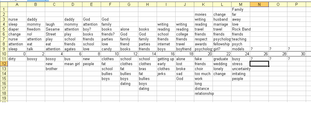 A histogram-like graph expressing my desires to have (above the age line) and to avoid (below the age line) throughout my life so far. As you can see, like most people my teen years were sort of lousy, but college and grad school are making up for it.