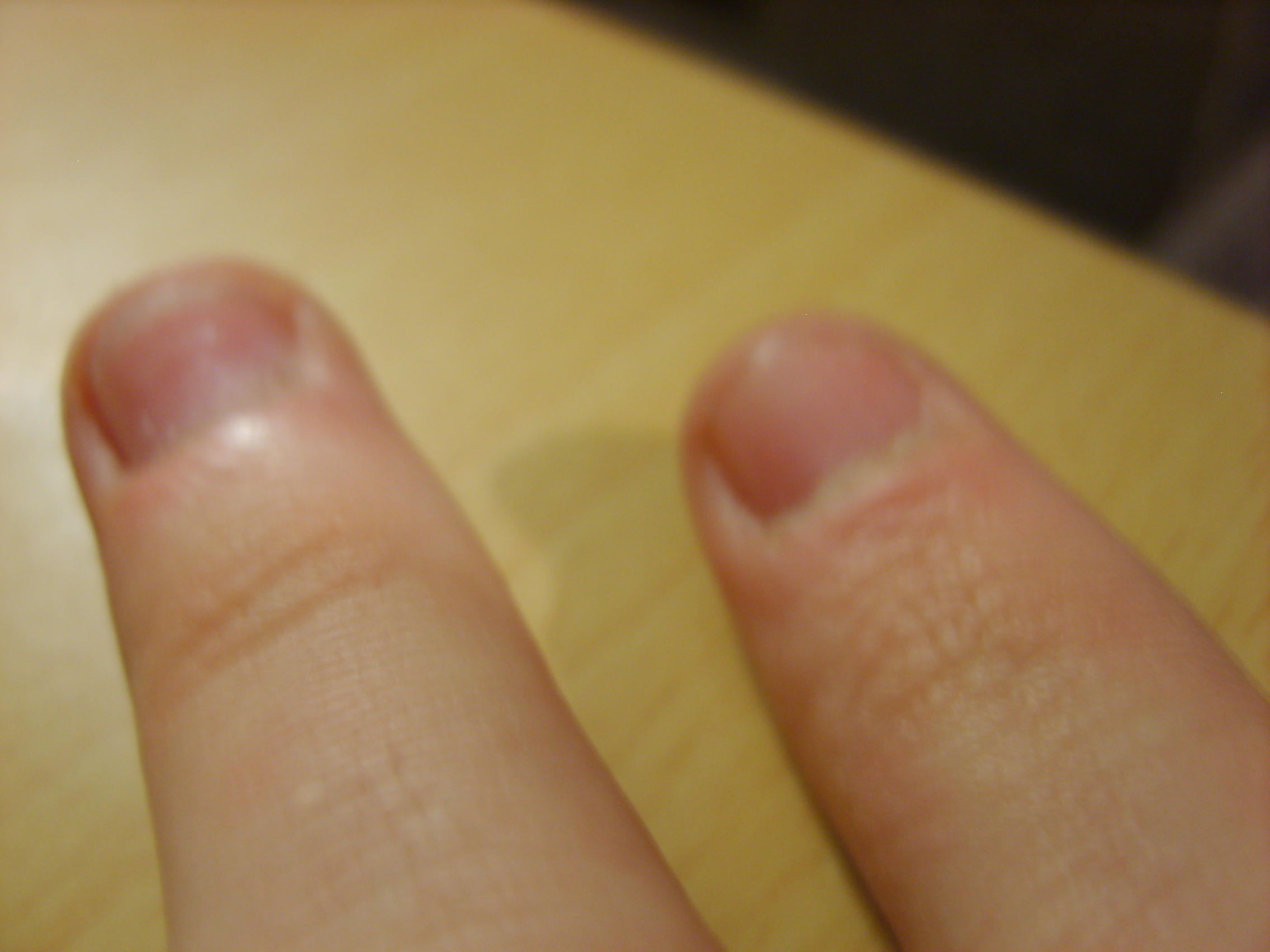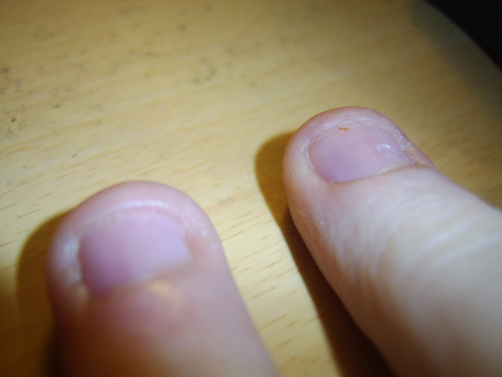 Very hard getting a photo of your own nails, my index finger's nail is less developed that its middle finger equivalent