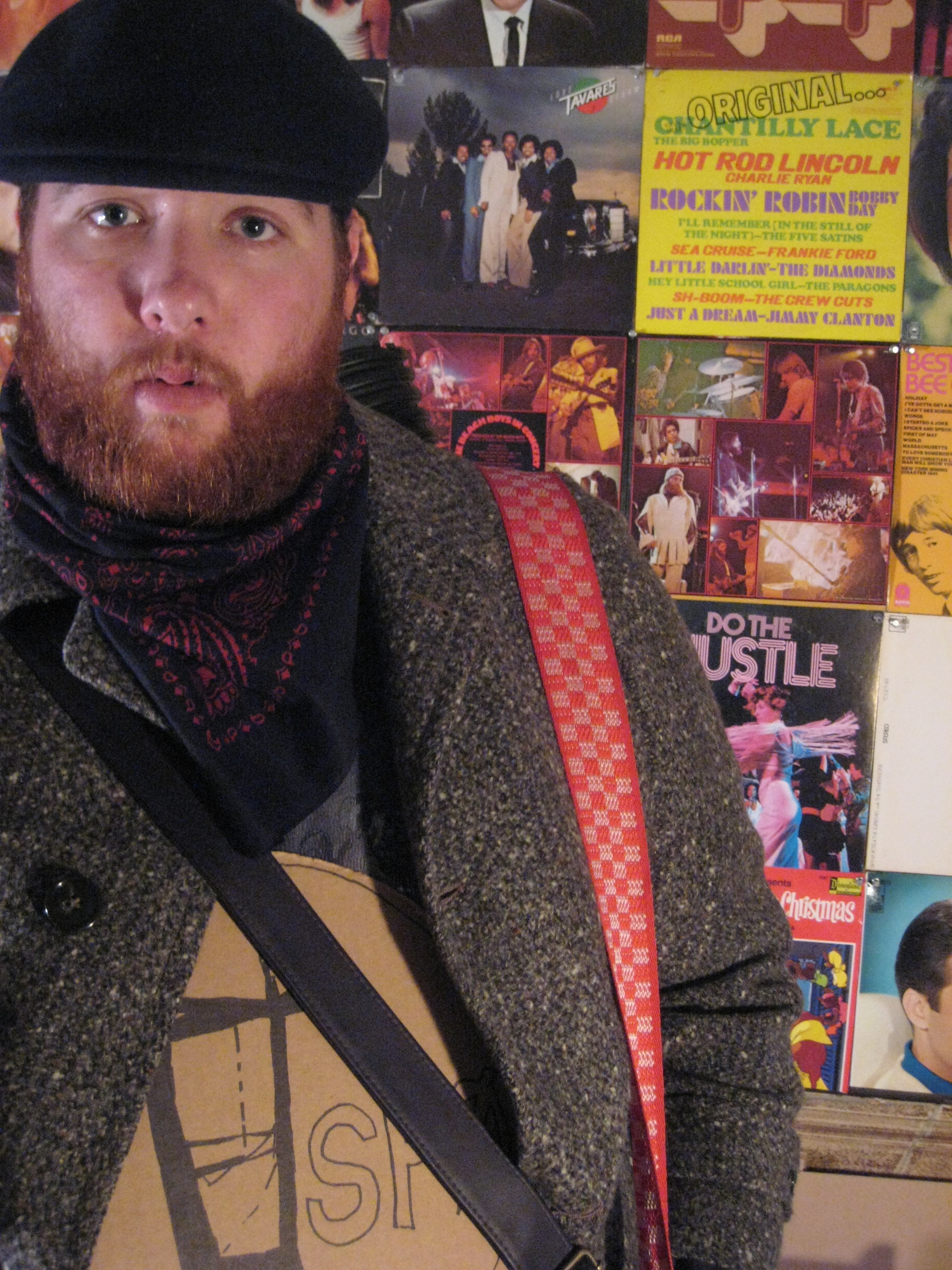 You might recognize a) the logo, b) the bandanna, c) the unrelated record wall, and d) the big plastic tube weapon w/ guitar strap.
