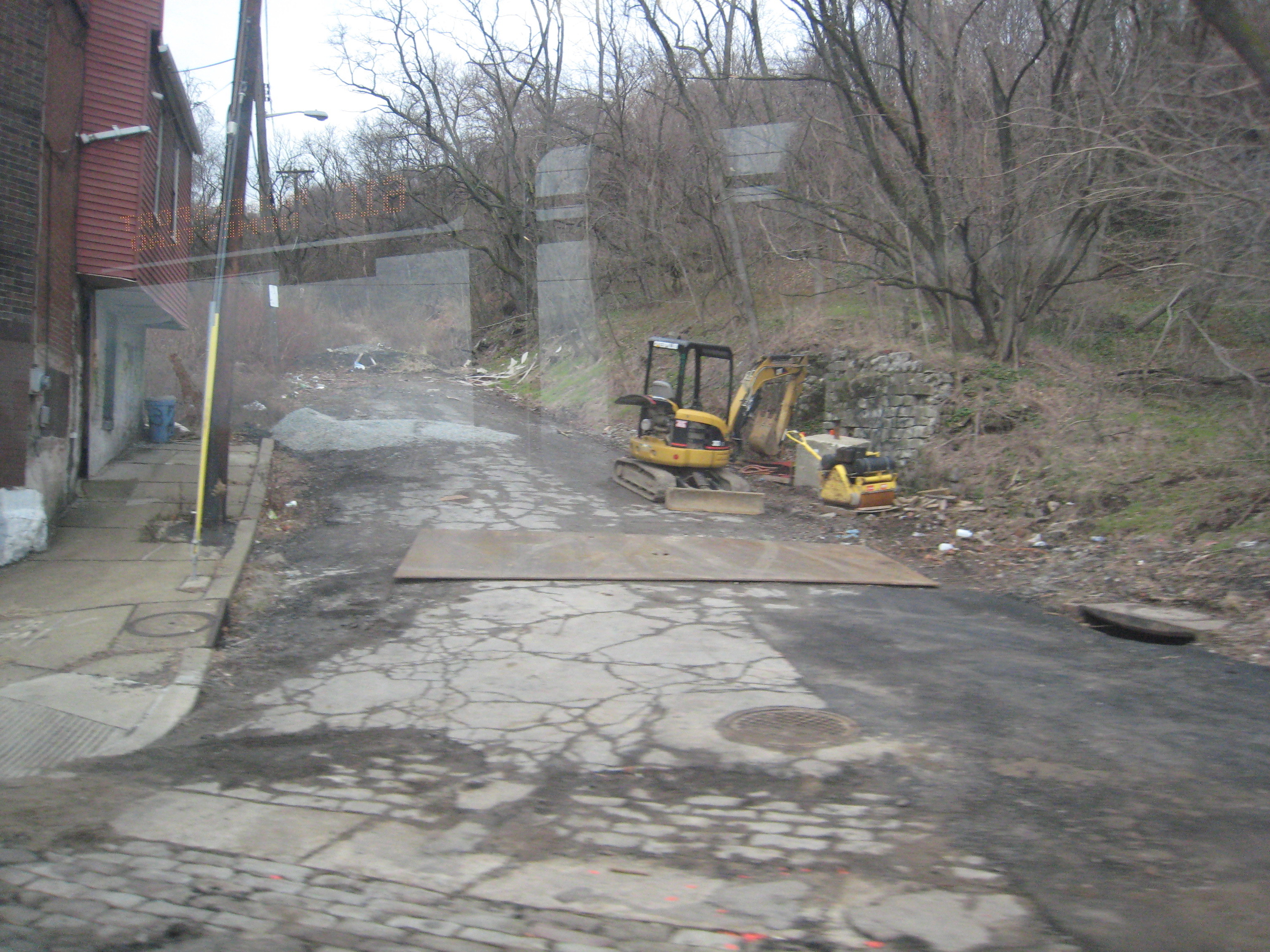 On the bus ride downtown, I passed some standard Pittsburgh desolation. This is a road in the Hill District.
