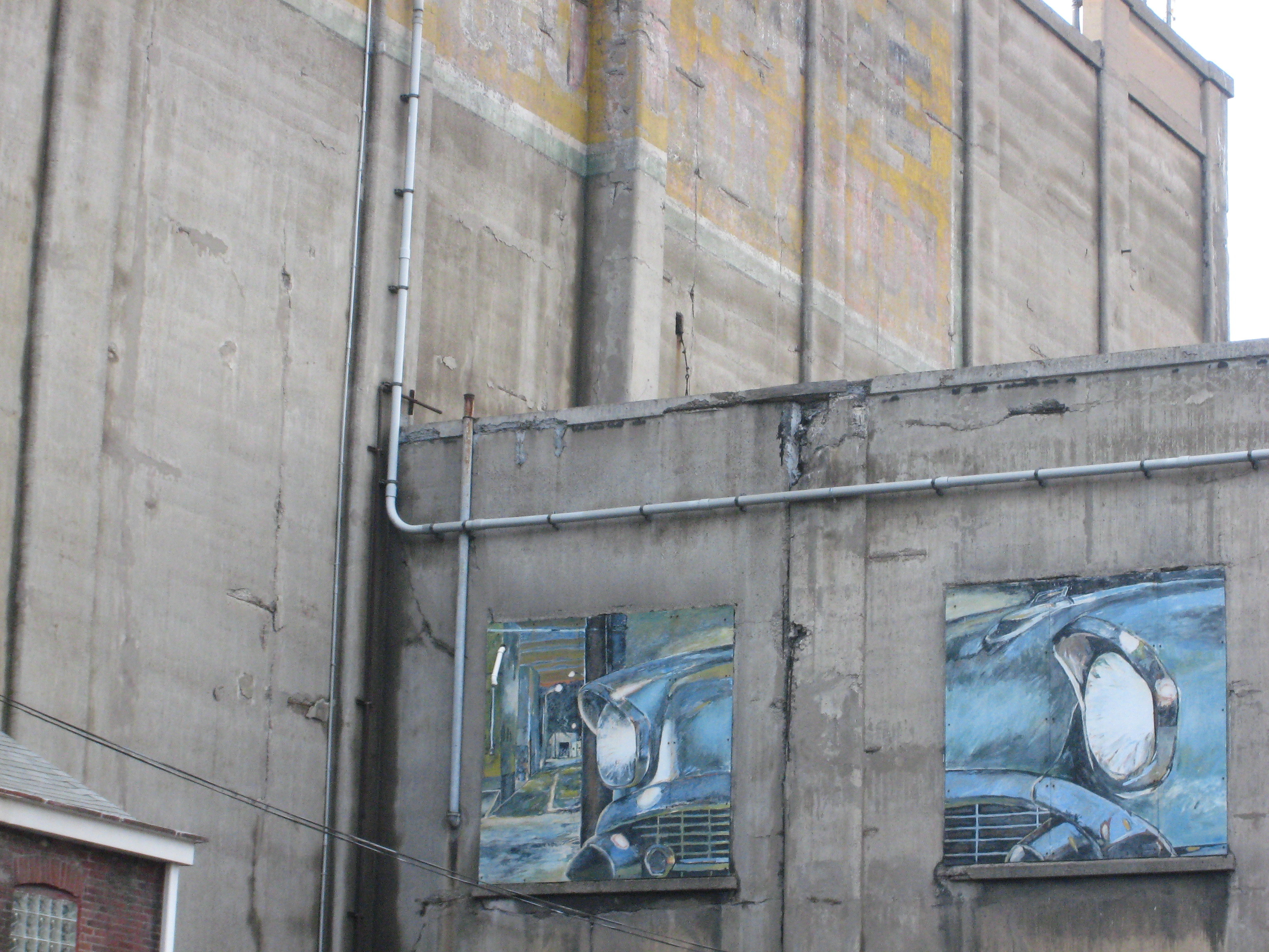 I first was drawn by the different construction sites downtown. I saw an Army-Navy Surplus store and bought a new bandanna. I wandered down a dark alley and ended up between the convention center and the river.