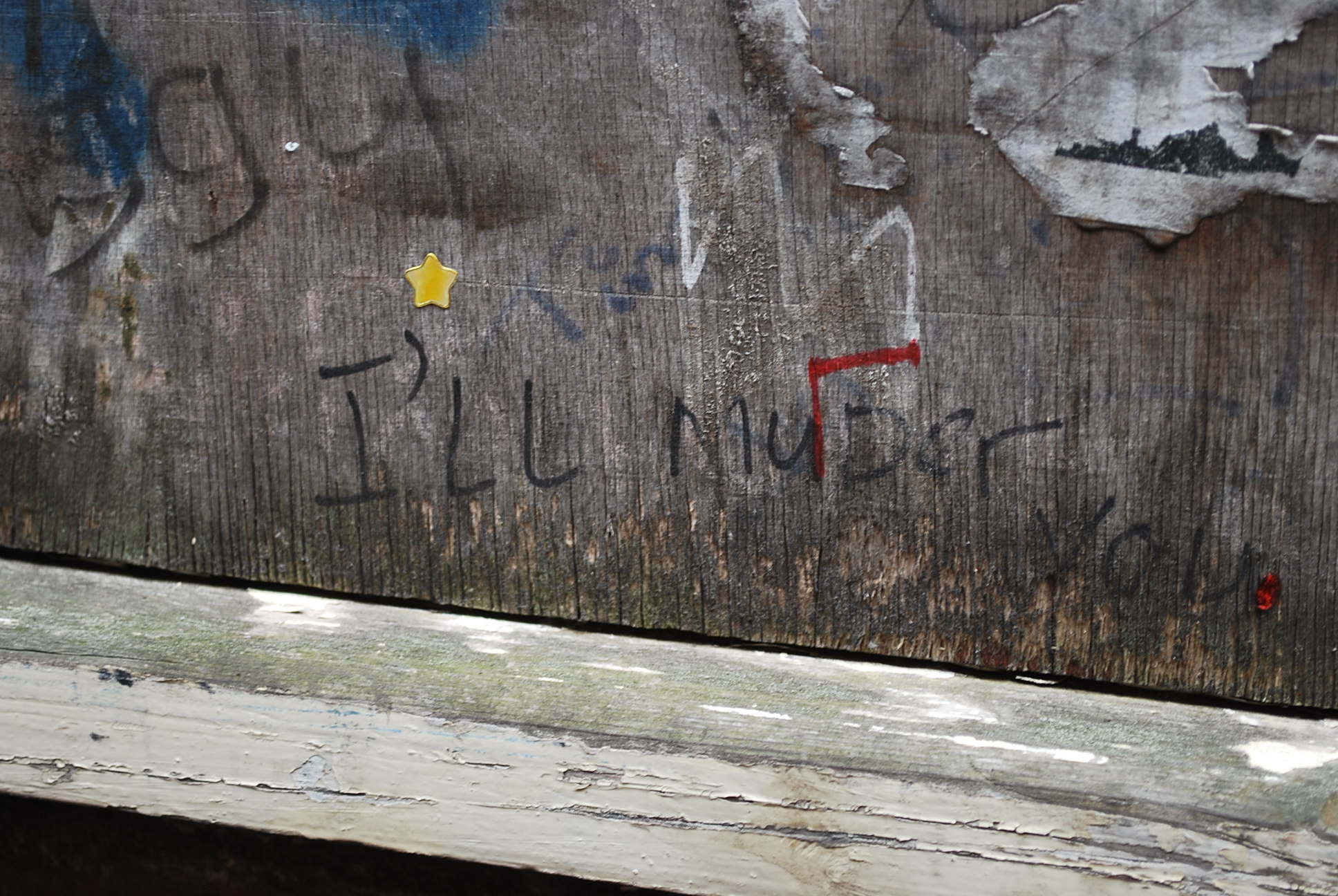 This is my first proper task firstly, I decided to use the graffiti and wall scribbles of the common (or garden) Yarco (‘Yarco’ – a tracksuit wearing, bling wielding wannabe chav from Great Yarmouth). Secondly, I planned to improve them grammatically by replacing missing apostrophes and forgotten commas. My aim was to improve the standard of graffiti that adorns our town and hopefully create a new generation of scribblers who can express their insults with some degree of sophistication.