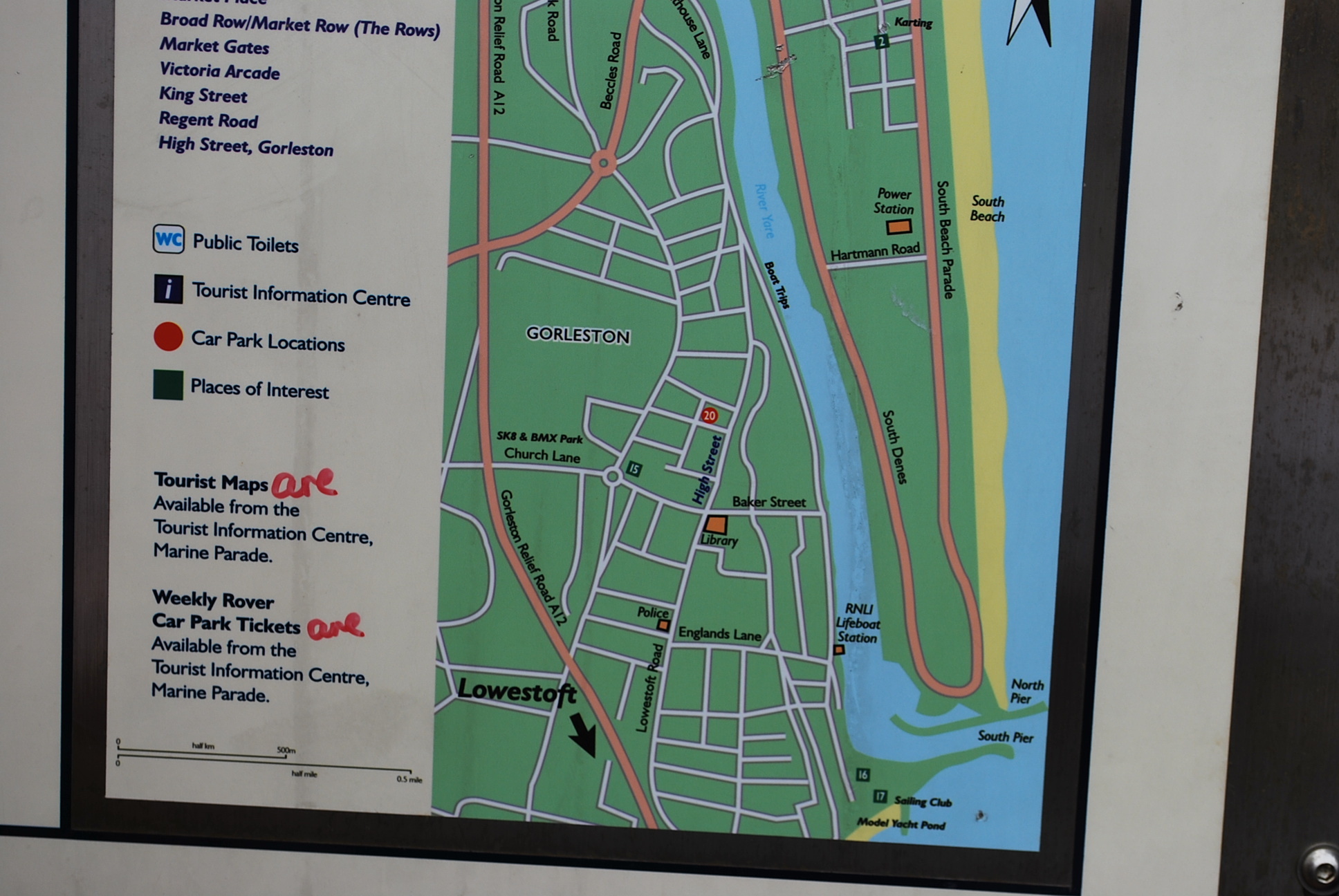 Next we drag poor Ben around the grimy and dingy back streets of Yarmouth town and it didn’t take long to find a whole host of correctable scribbles and signs.