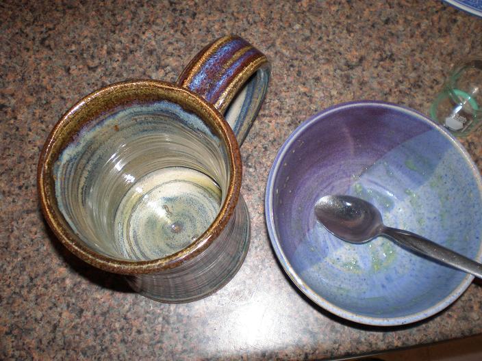 It would have offended my sensibilities to add the green color right to the bowl of oatmeal/cup of tea, though I might have ended up with a more brilliant color. I suppose all that I actually "made green" was some milk and some water. The oatmeal was kind of an uninspiring green, but the tea looked really really neat.