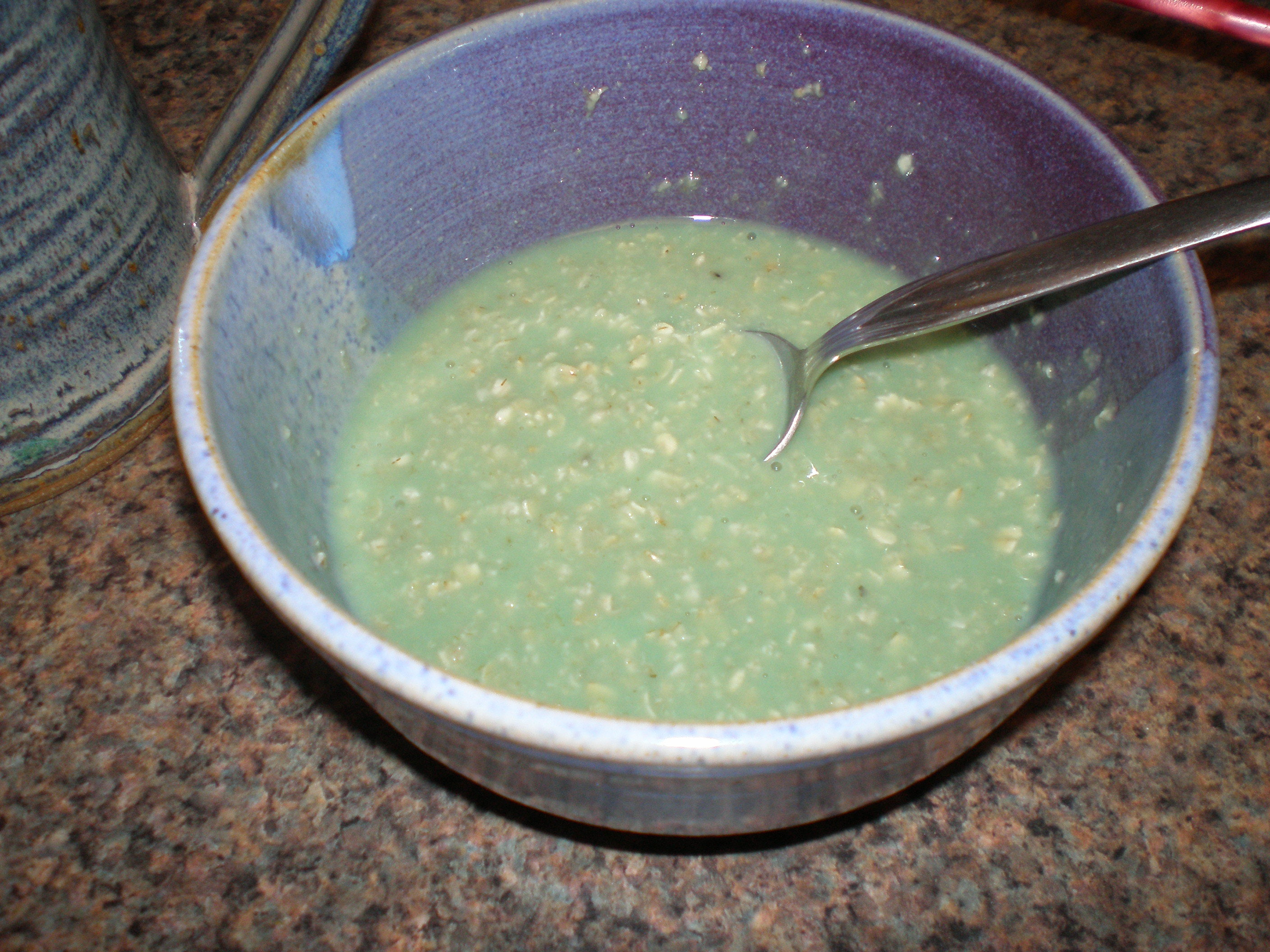 You know what isn't usually green? Breakfast. (Except in Dr. Seuss.) In this case, the breakfast-turned-green consisted of maple & brown sugar flavored oatmeal and English Breakfast tea.