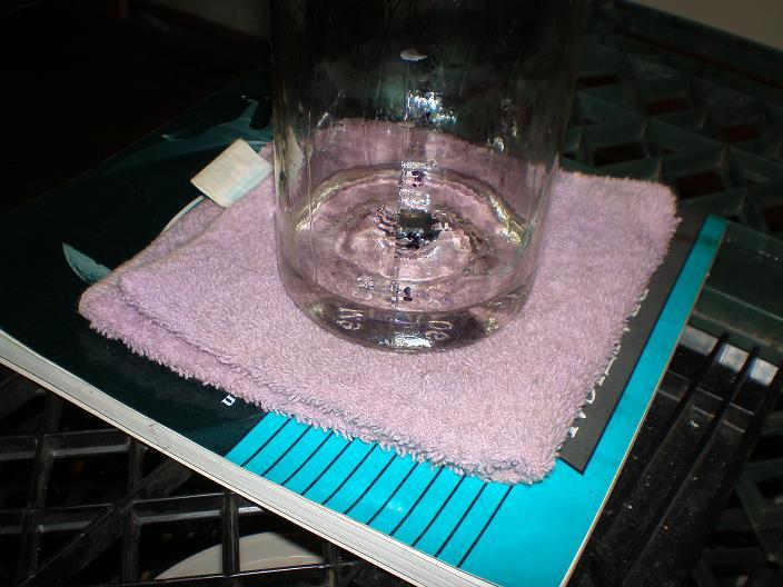 Check it out. There's some liquid down there! We dumped the first ounce, so called the "heads" because they're rich with compounds associated with hangovers and blindness.