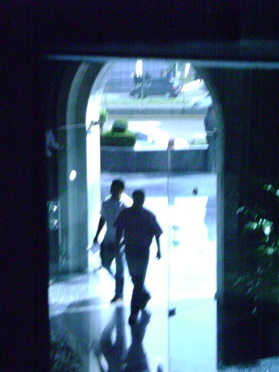 This is how it looked when I got to the observation point, about 2.5 minutes later. (I walked briskly across the lobby and headed upstairs, bumped into Javier, who was going to lunch, exchanged some pleasantries about how good is to run sometimes and reached the place behind the mirror glass).