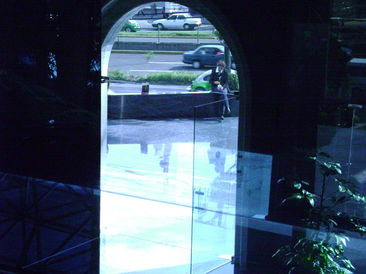 I got scared behind the glass, which is obvious in the way I messed up the picture that was expected to show the guy standing in in front of the statue, pulling it off. Heart pounding, I took the elevator to my office in the 5th floor, awfully aware that I was wearing a blouse that was entirely too pink and that the guy had actually seen me. I had no idea there were undercover policemen/security guards at my office building. There are already plenty of the ones in uniform. That evening when I left I saw that one of the uniformed guards was now standing in front of the very spot wher La Catrina had been.