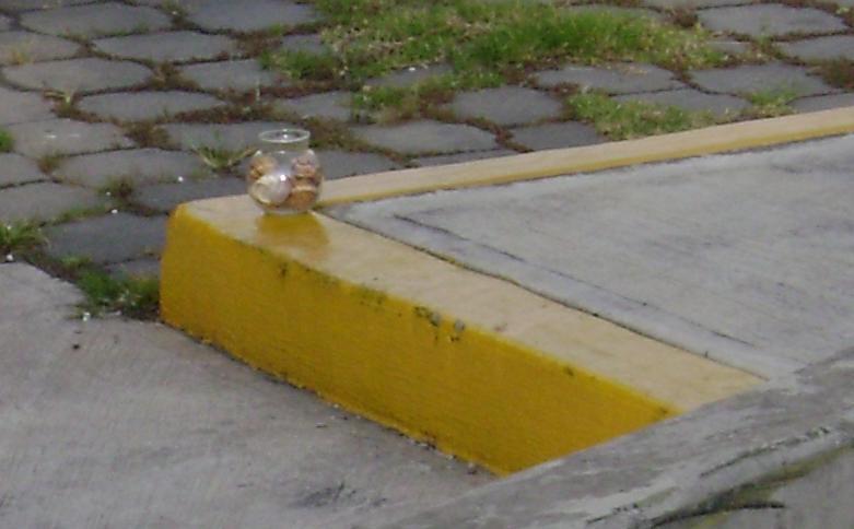Less than 30 seconds afterwards, a man that I had seen waiting outside the parking lot came directly towards La Catrina, tried to take it away, looked suprised when finding out it was stuck, yanked it forcefully and took her off, disappearing from my view. This is the picture of the man pulling it off, but you can´t really see it because I was probably shaking too much and because the light from outside had just changed, giving lots of glare.