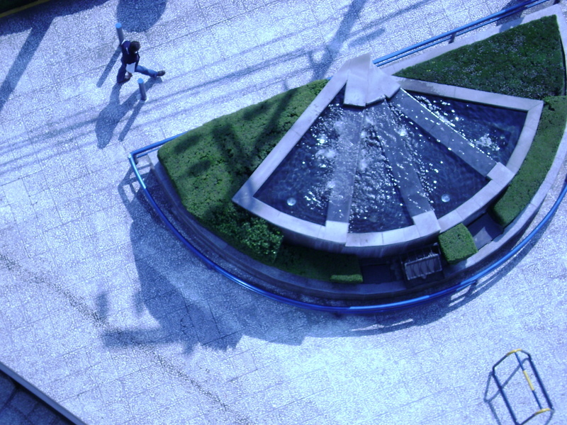 I found this other spot that looked promising to superglue something, a low "side" of the main staircase of the oh-so-corporative building.