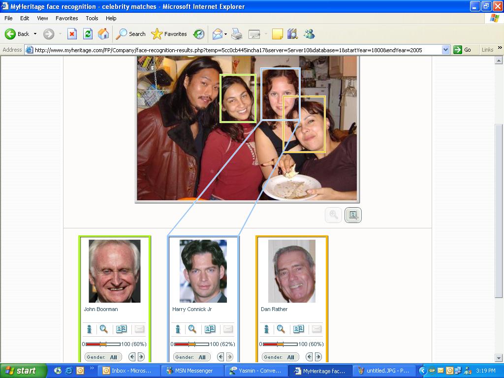 In the second instance, I look like Harry Connick, Jr, of course, and my girlfriends look like Dan Rather and John Boorman. I think I'll have more luck picking up. . . ;-).