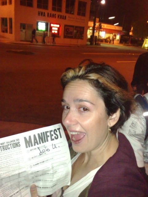 (Also, I'd been burnt before - in JTTEOTN: Oakland I got caught in a sad, sad way, when I was sneaking up to checkpoint four, seeing some nice guys I'd been running along with earlier in the evening, so I waved at them... and suddenly realised that they had turned to the dark side. (Did I mention the thing about being colorblind?) I ran until my lungs hurt, and thought I had lost them - that is, I had lost the three guys, but this girl kept jogging after me. So I sprinted some more, turned and by golly, she was still there. So I continued, by now coming full circle around the block, limbs aching, my lungs collapsing, and I had to stop. Which she didn't. Very sad story.)