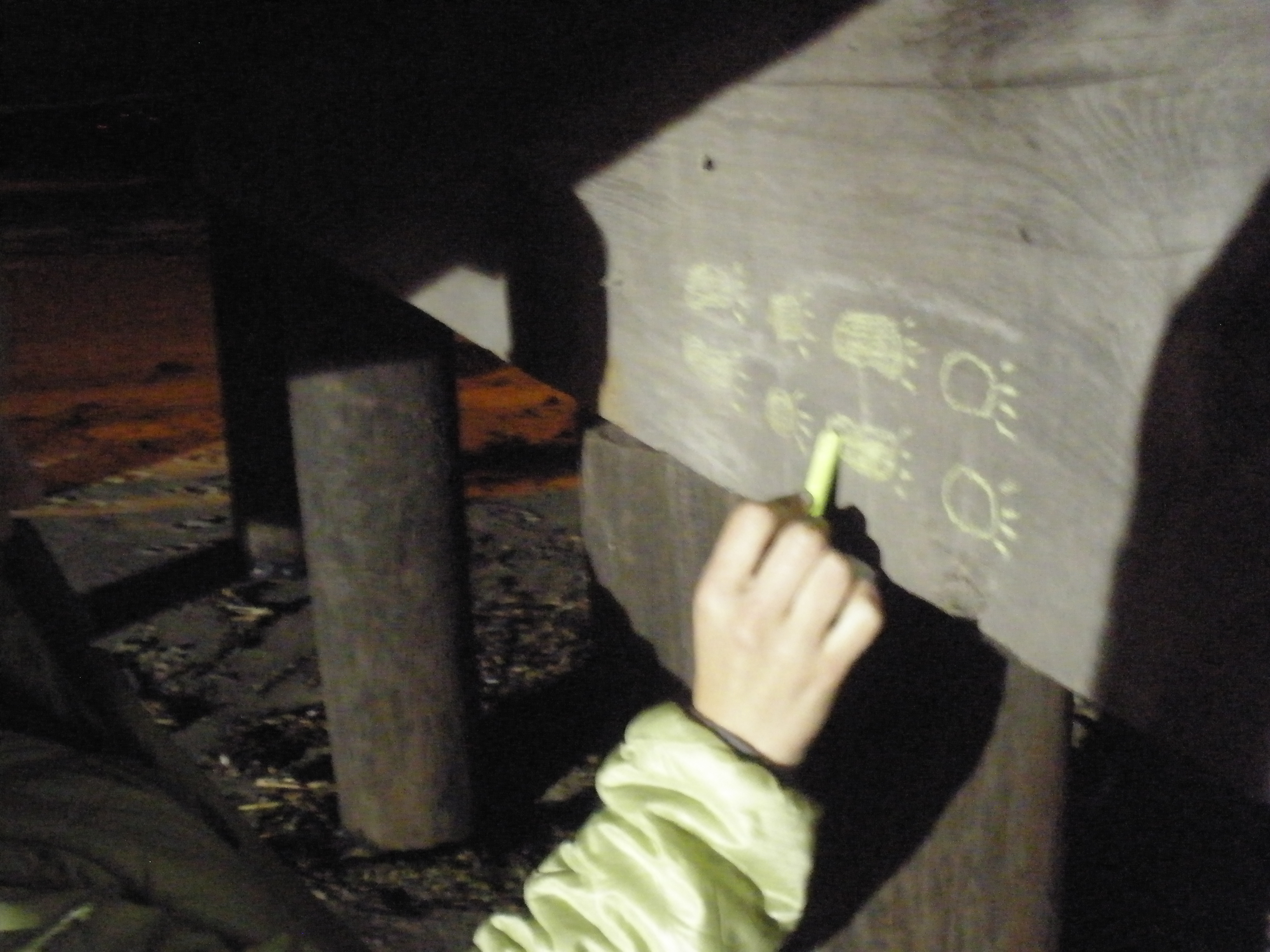 Becca and I headed out to the pier in the small town right off of UCSB's campus, chalk in hand, to do this task. It wasn't the most eventful task, but it was fun. We walked along the underside drawing footprints of various kinds, and then had a lovely walk down the pier.