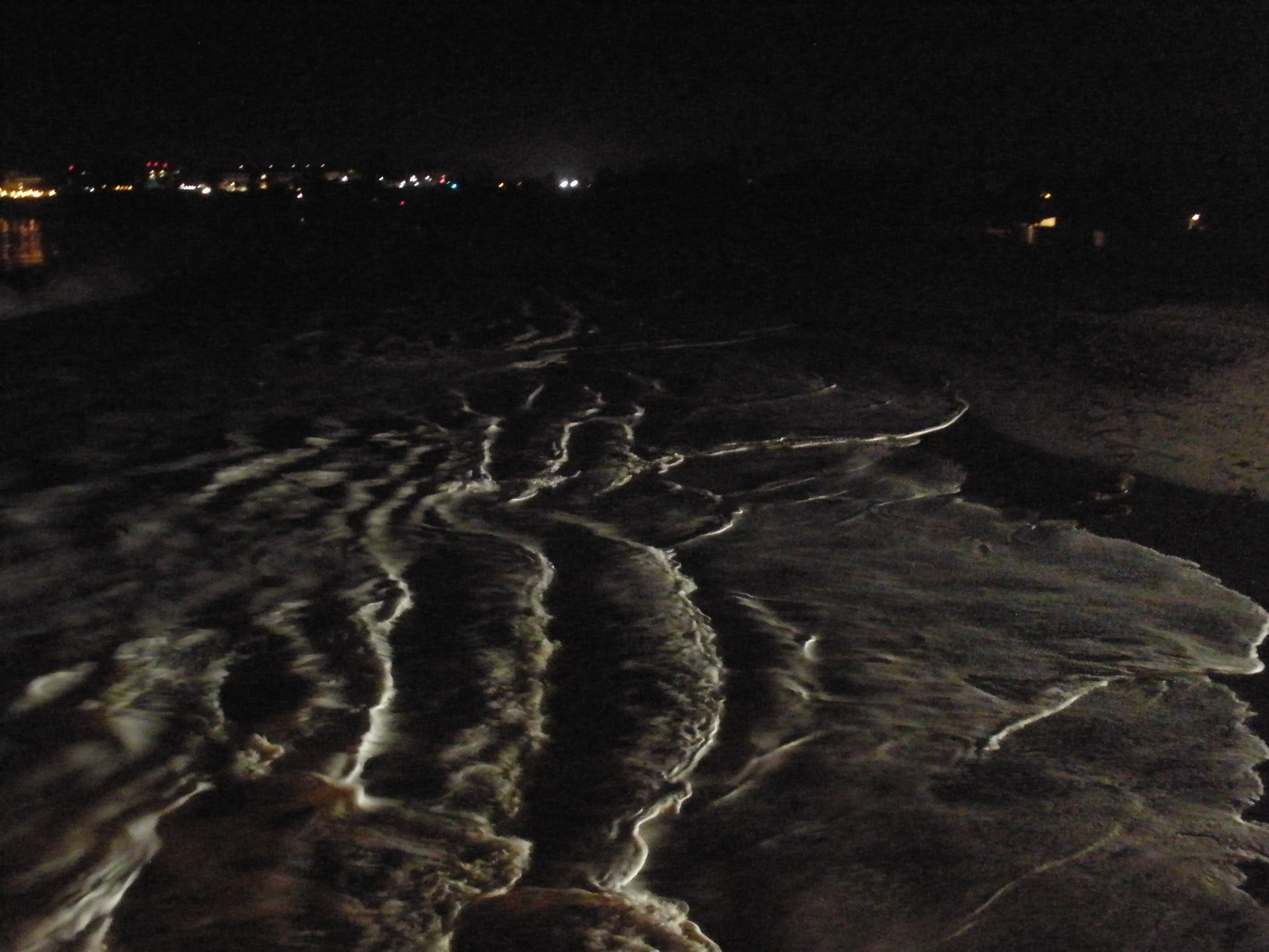I've always loved piers at night, especially ones like this with the bright lights. From certain angles (and with my shitty night vision) it looks like an endless wooden bridge, stretching out over nothingness. And on night like this one, where for some unknown reason people are out fishing, the seem somehow much more regal, like magicians fishing off the side of this bridge, looking for dreams swimming through the void.