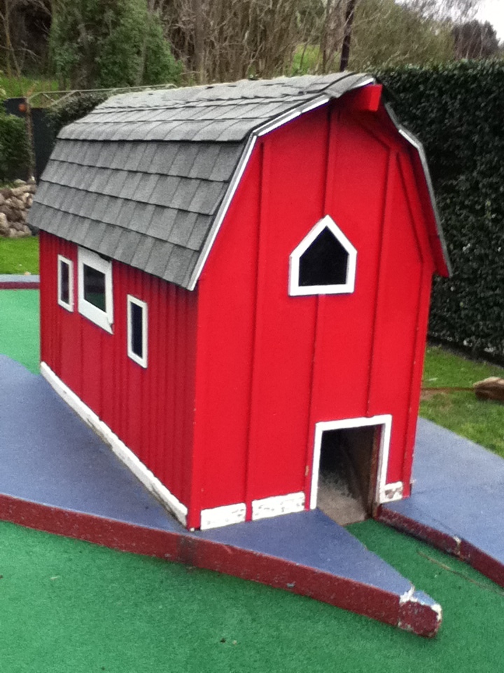 After some other shenanigans, we later wound up at a run down little minigolf course, which we figured would be an excellent new home for our plant. The place was pretty run down (the windmill was missing a blade, so it didn't spin in whole circles), but it looked like the owners were trying to fix it up.