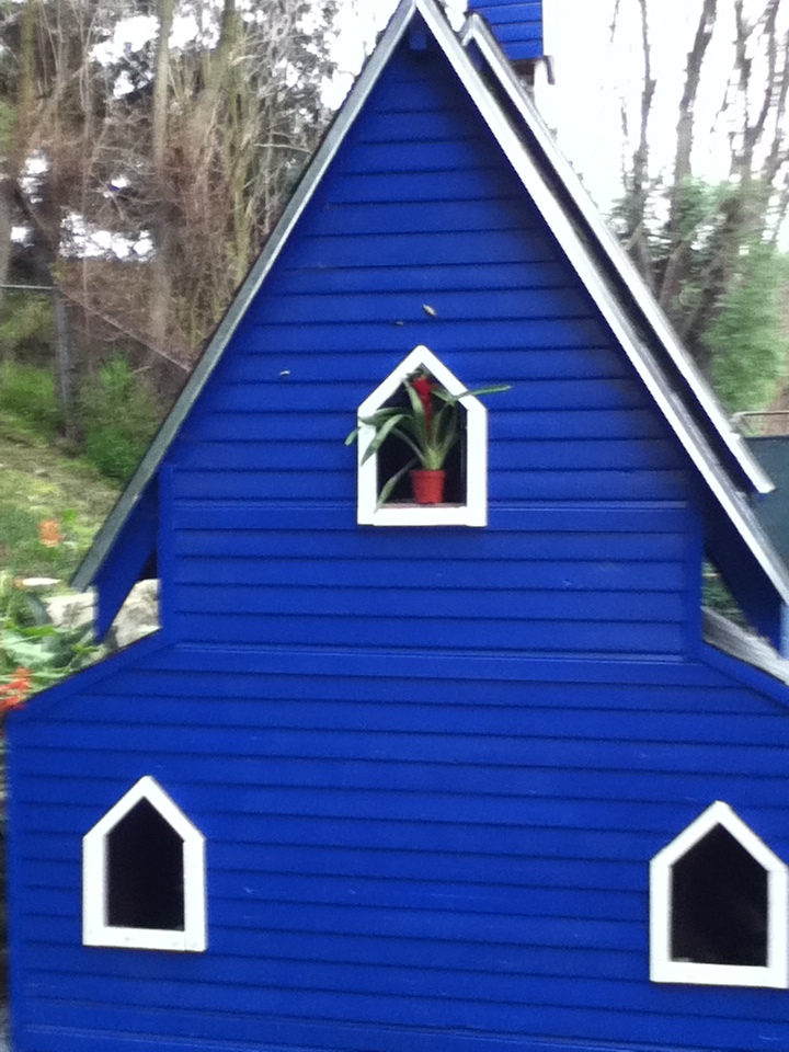 We considered a few different possible new homes, but eventually decided on one of the windows in the tiny church in the back.