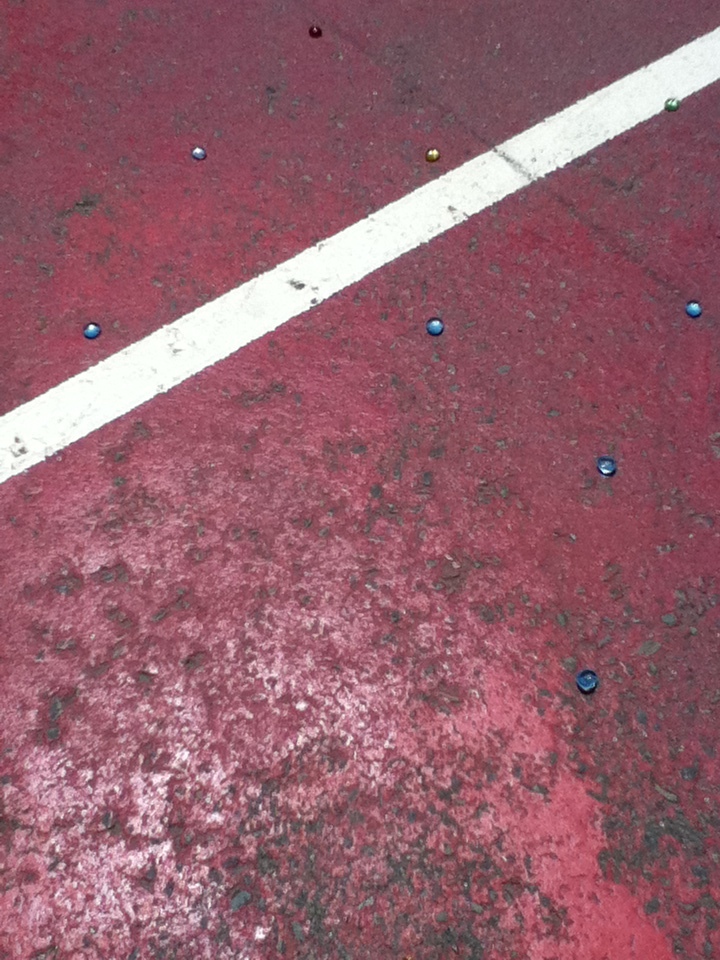 A few weeks ago I went back to my elementary school for the first time in years. I live just a few blocks away from it, and I had heard that there had been a big push of new construction all over the school, to modernize it and make it a lot bigger and better. I had also been wanting to do this task, so I grabbed a thousand glass thingies from the east bay depot for creative reuse, and headed over for some big time nostalgia.