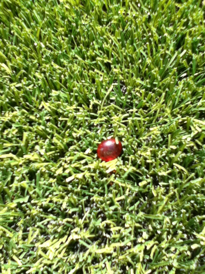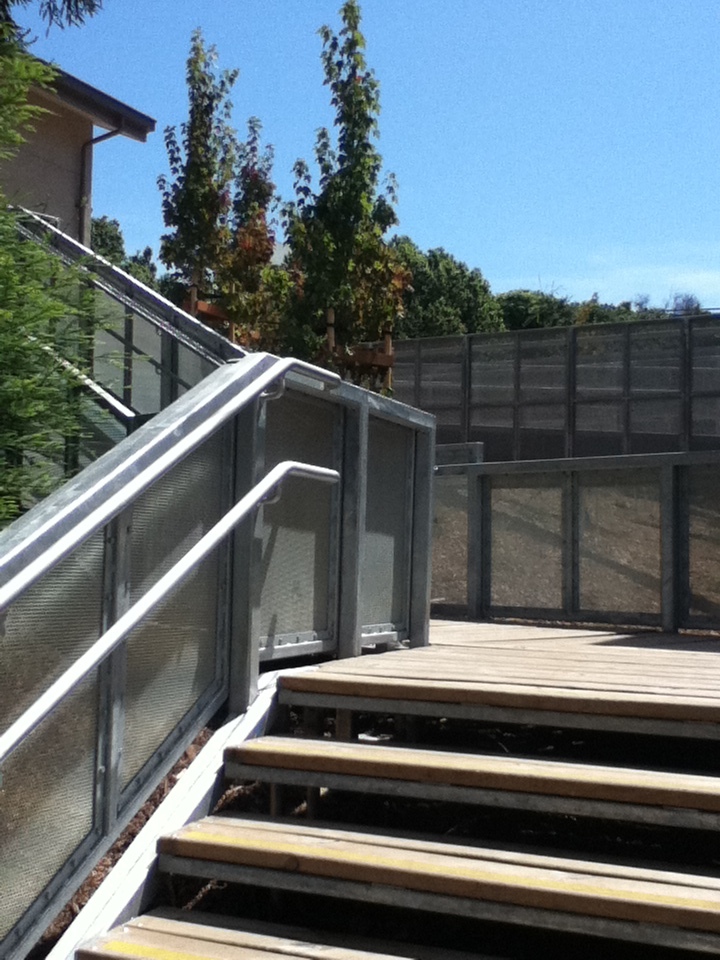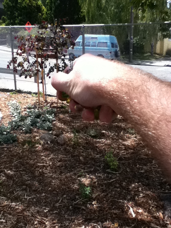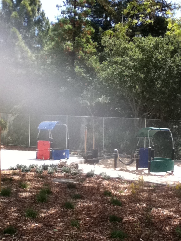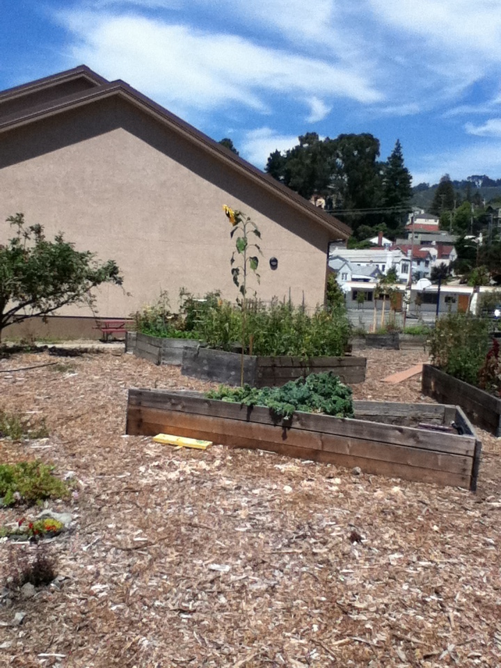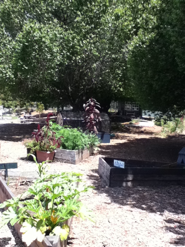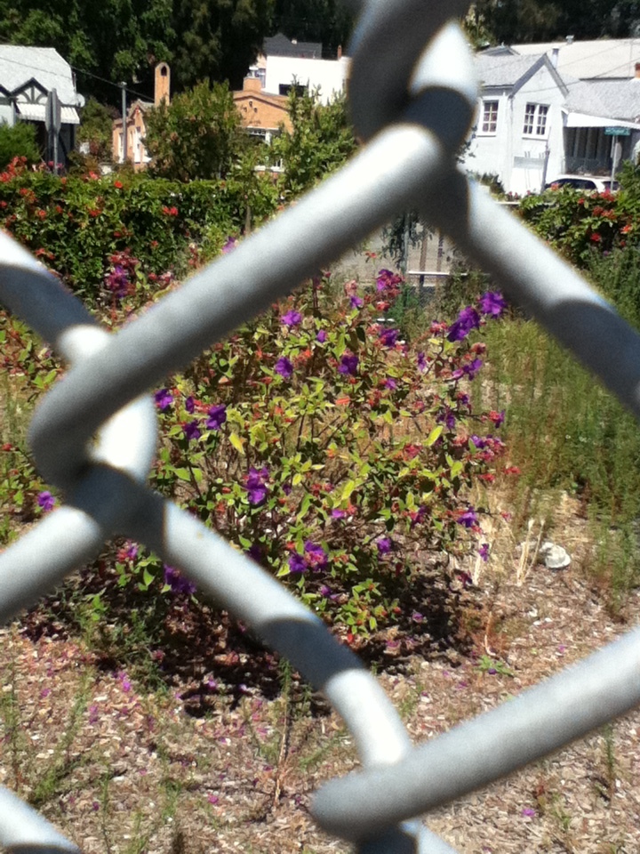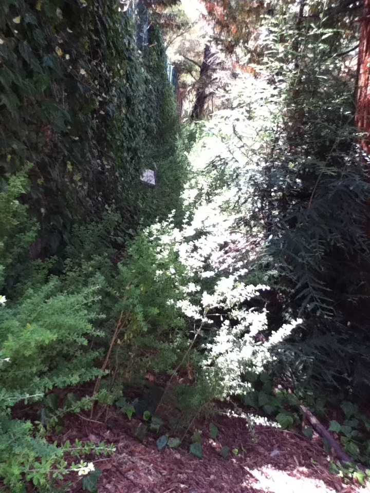 Just past the garden used to be a huge, child-forest sized collection of old redwoods, brambles, ivy, and other things that grow along freeways. Inside it, if you could fit through, was an old cement slide, from even earlier in the school's history, that had never been torn down. Everyone over 3rd grade knew about it, and would sneak off during recess or after school to play on it with bits of cardboard. Its gone now, and a very pretty view of the lower school, and a future extension of the garden, is in its place. I dropped a handful of glass but forgot to take a picture.