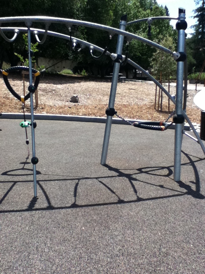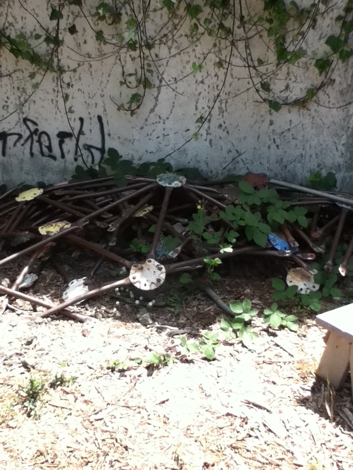 I saw in the corner, right up against the concrete of the freeway wall, the remains of one of the old jungle gyms.