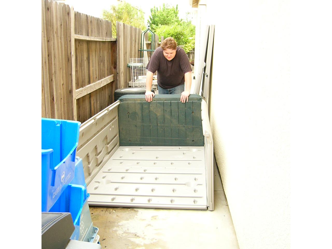 One of the things my mom wanted, practical as she is, is help with chores. I chose the one that seemed the most fun: Building some sort of plastic shed. And, I knew that she would take pictures, like she does with everything, and I could translate them into points, like I do with everything.