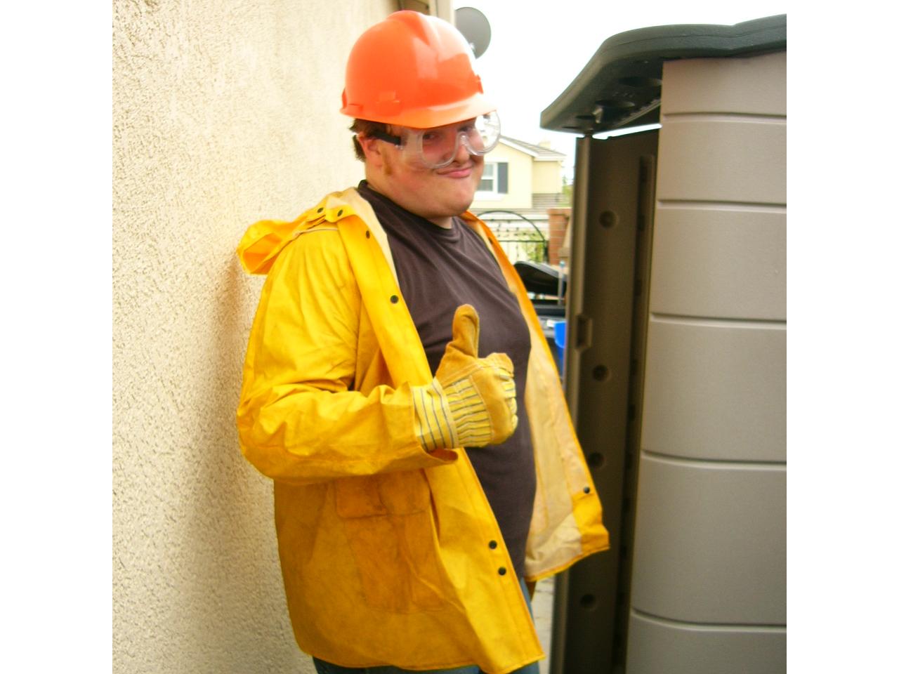 Midway through the operation; my mom decided that I should be dressed for construction, and pulled out (from god knows where) an honsest to god hard hat, safety goggles, gloves, and a yellow jacket. I humored her.