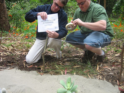 Previously, several desert plants were chosen by the team for their terraforming abilities. These plants were placed with the utmost of care in there new enviorments, and a barricade was erected. A sign was hung to declare the existance and the official nature of the project.