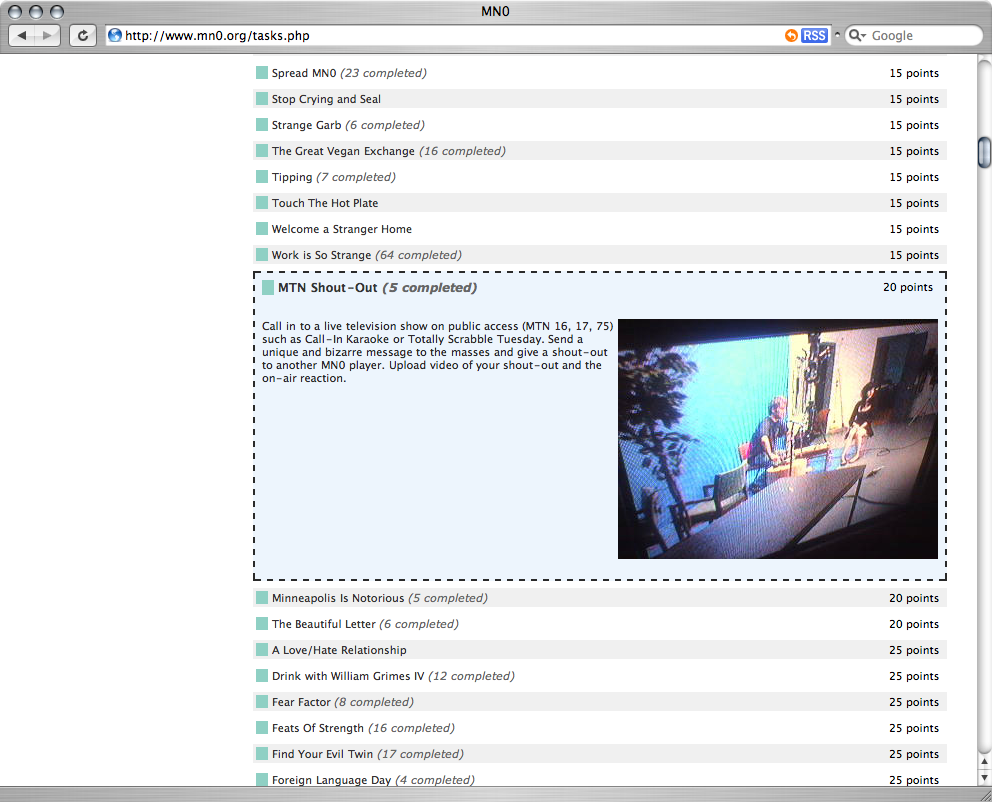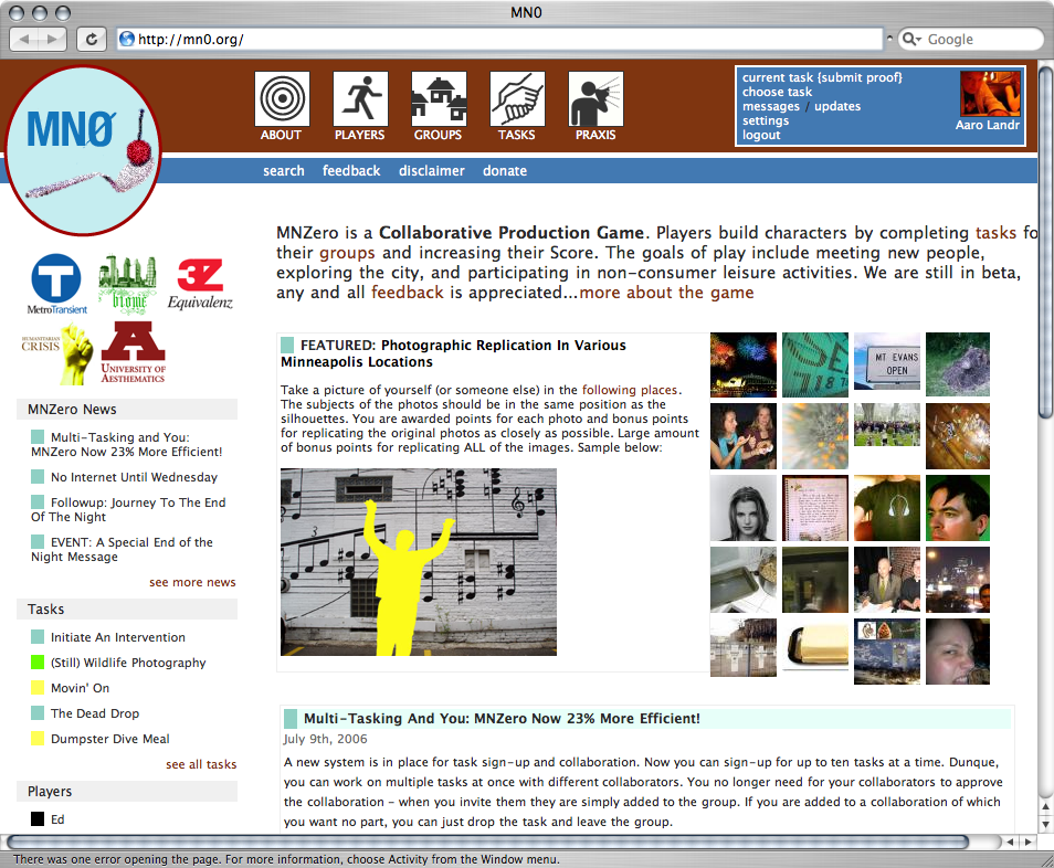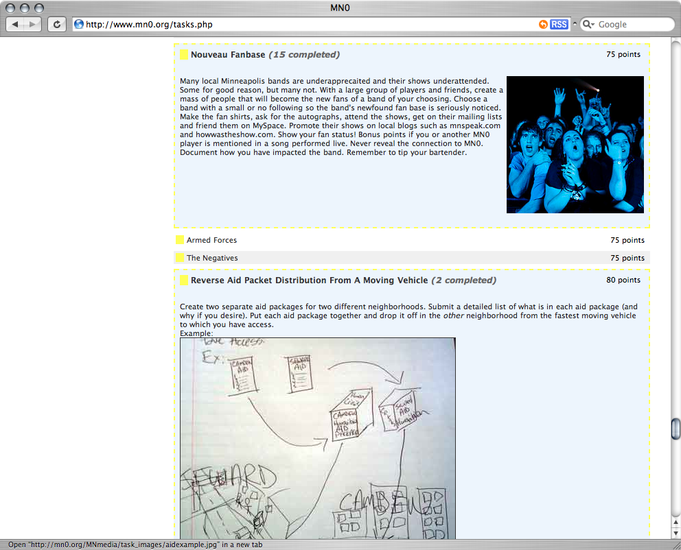 Since June of last year, Rubin, Nicoles, Avidd, Jason 7au and I were working on Reverse the Game. The concept was that we would recreate the entire SF0.org site as MN0.org in every aspect we could consider. It'd be a Minneapolis-based game and a few people from San Francisco would be "translating" some of the tasks to work in the Bay Area. A great project that was very poorly managed and got put on the backburner after a lot of broken timelines and other priorities came about. The primary roadblock to this project was Burning Man, as most of the people of the team were preparing things for Black Rock City. I don't have any problem with this and I think that's a good thing. What I did have a problem with was being asked to do work for it and being told that others were going to do work and then I realized I was the only one doing anything. A couple weeks later, another email would be about when Rubin in SF was going to complete portions of MN0 and it never got done. Every couple weeks I'd get another email or IM about the same thing. I'd continue to do work, and the complimentary work I was told was going to be done never got done. I had a lot of respect for Nicoles, Avidd and Jason who were honest and upfront about their willingness and ability to work on it. Rubin wasn't and sent me off doing all the work for his task and keeping me latched on by saying he was going to help.