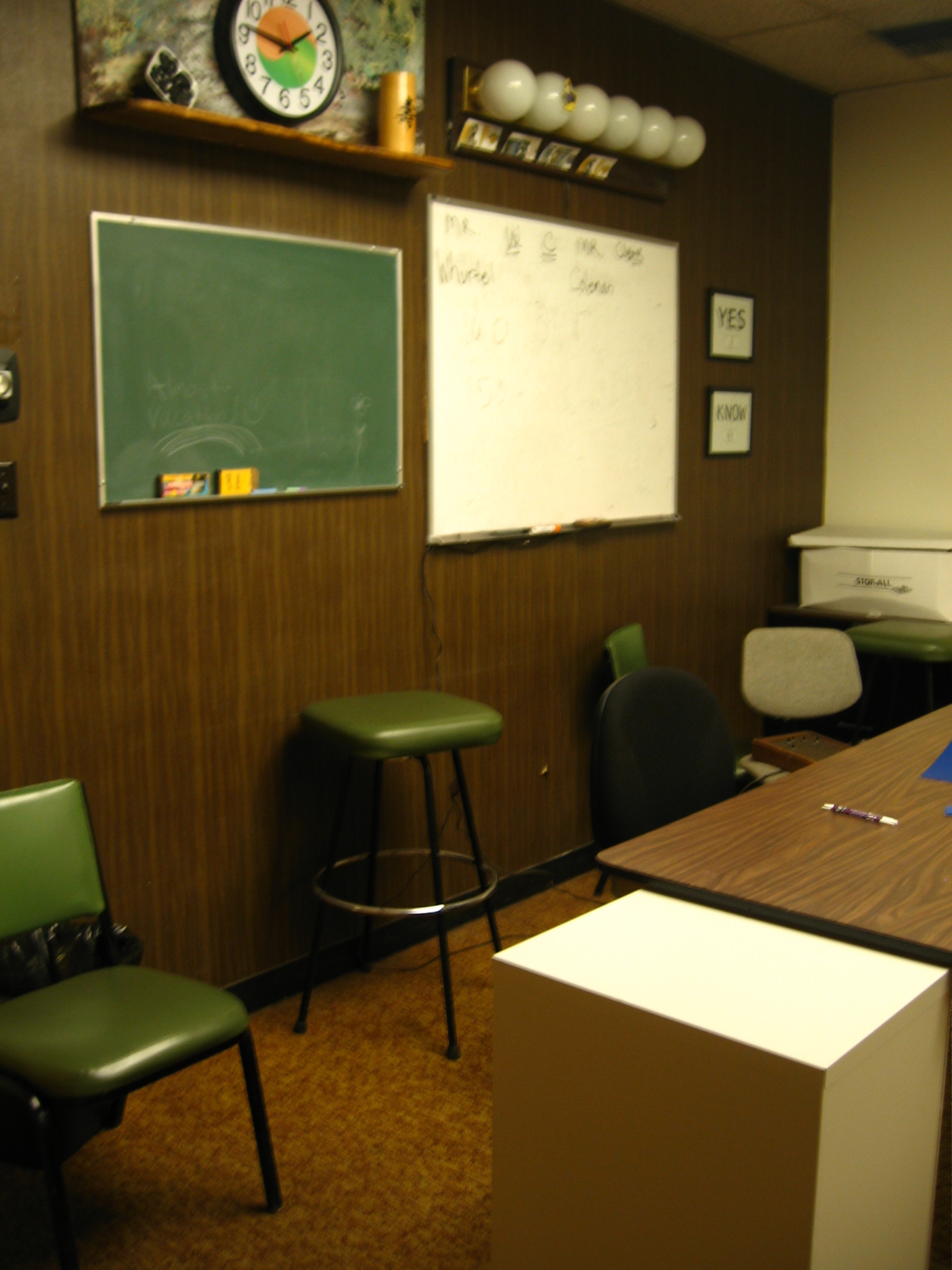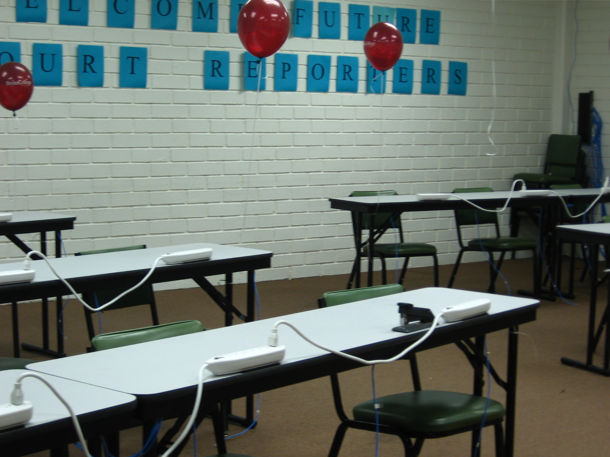 This is the classroom for the new theory students. They get balloons, but still no windows.
