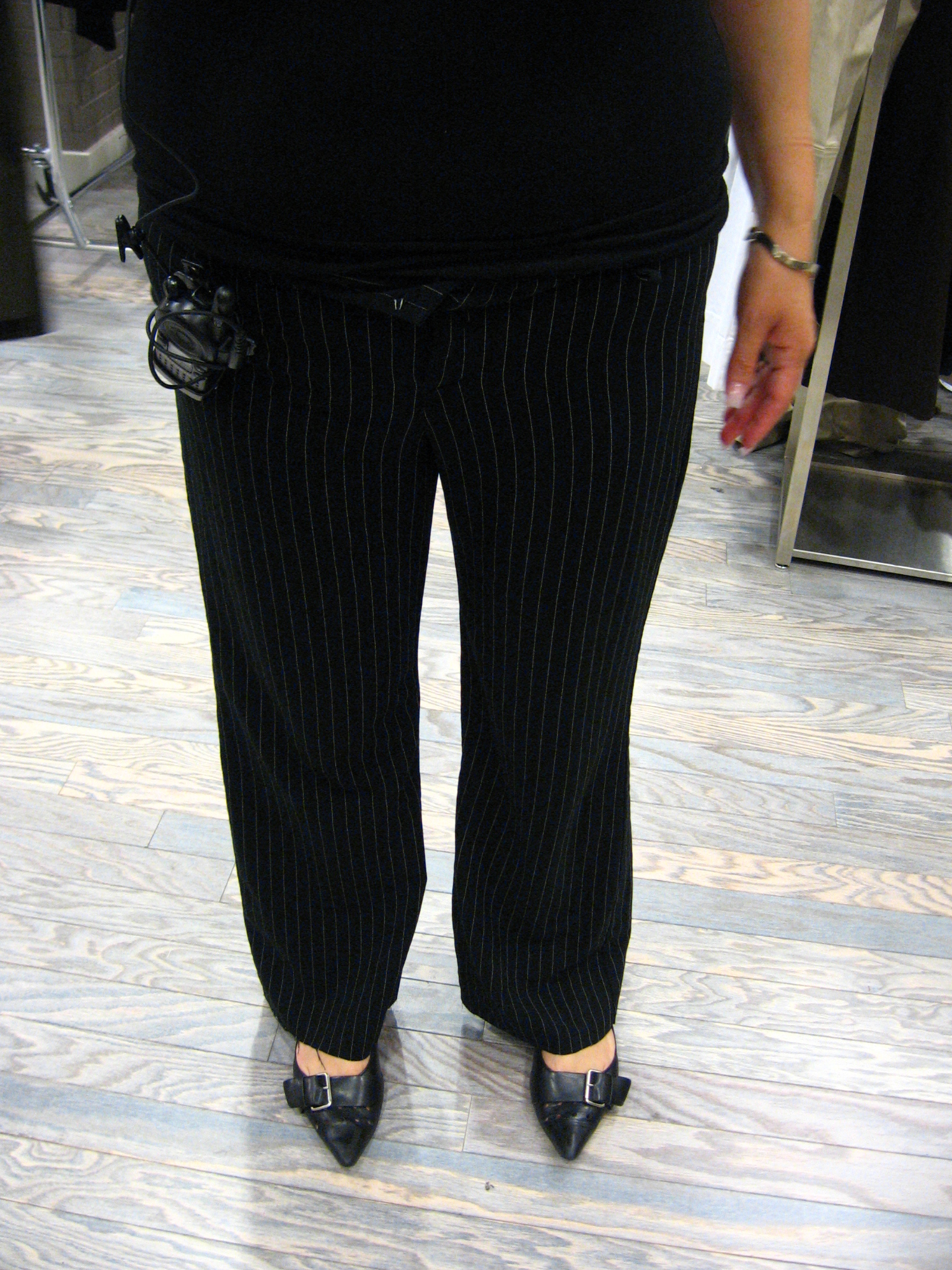 June 13th, 2007 11:30 PMWith that in mind, I began to wonder about how people would react to me asking them if I could take a picture of their pants. So that's what I did. We went to between 20 and 25 clothing stores in the Glendale Galleria. I told sales clerks in each store that I was working on a project focused on pants; and that I had decided to focus on clothing salespeople's pants in particular. I asked them if I could take a picture of their pants. Of those stores, 16 stores allowed me to photograph one of their salespeople. And in one store, both of the salespeople wished to be involved.