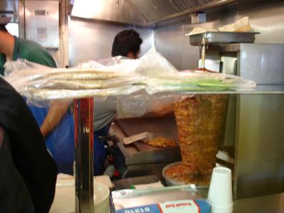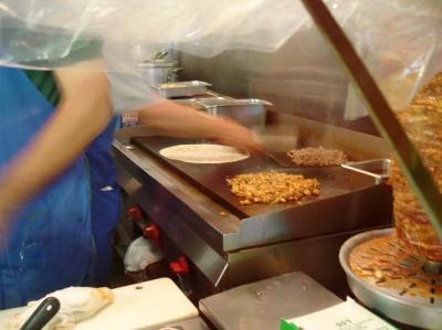 First, meat is grilled. Usually, its already been precooked, and only thrown on the "Plancha" momentarily to reheat and perhaps add a bit of flavor. As the meat is cooking, the tortilla is also thrown on, primarily to heat, but also to slightly moisten the tortilla, giving it a malleable quality which is necessary when wrapping it around many ingredients. Dry, half cooked flakey tortillas are not as easily swallowed, require a bit more lubrication (such as sour cream or guac), and a bit more chewing.