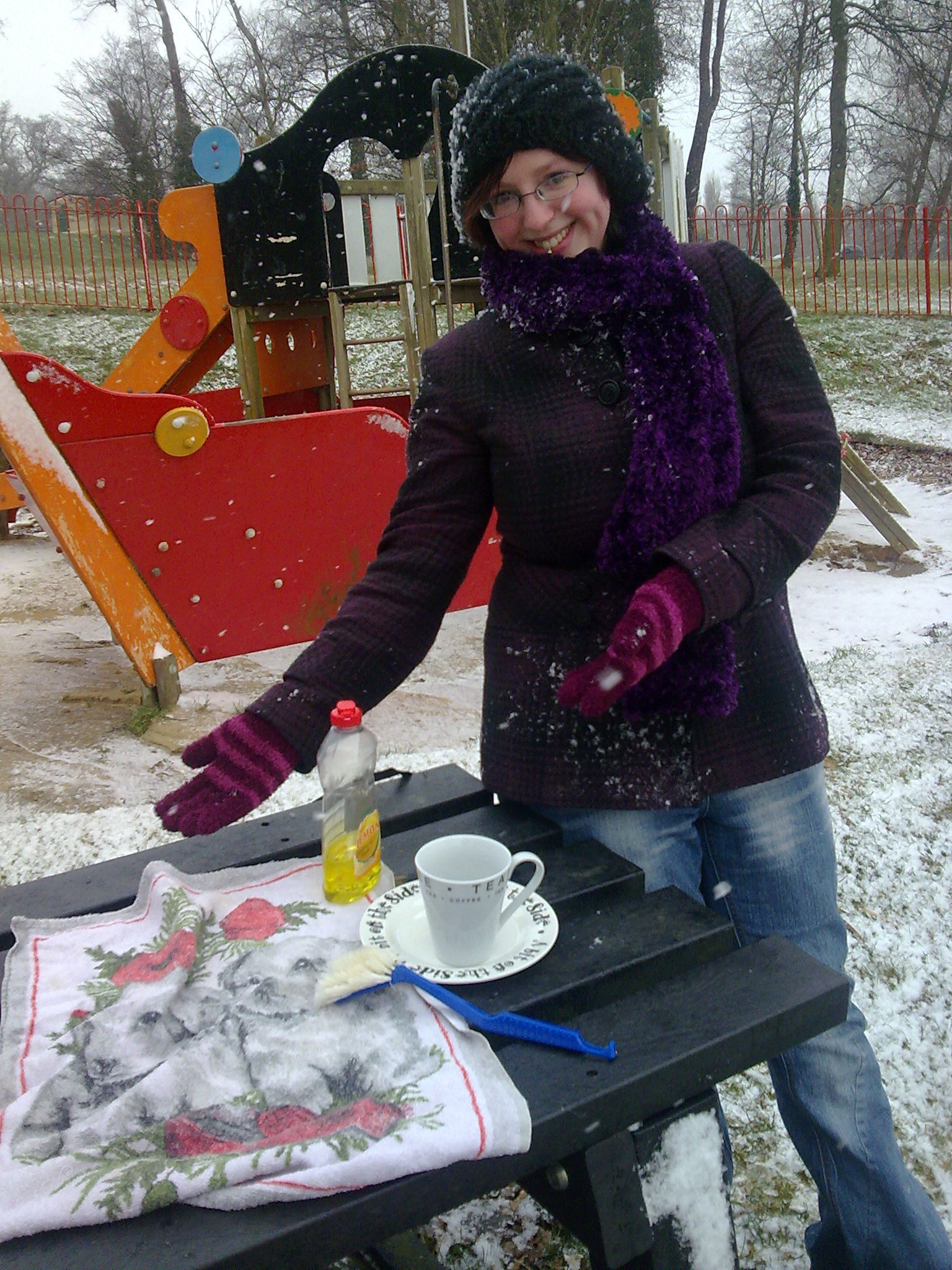 sadly the snow had began to thin out and i had to drag some together to use..creating a rather bare patch around me. We were also in a sand park so there were slight gritty issues, but hey they helped with the scrubbing effect :)