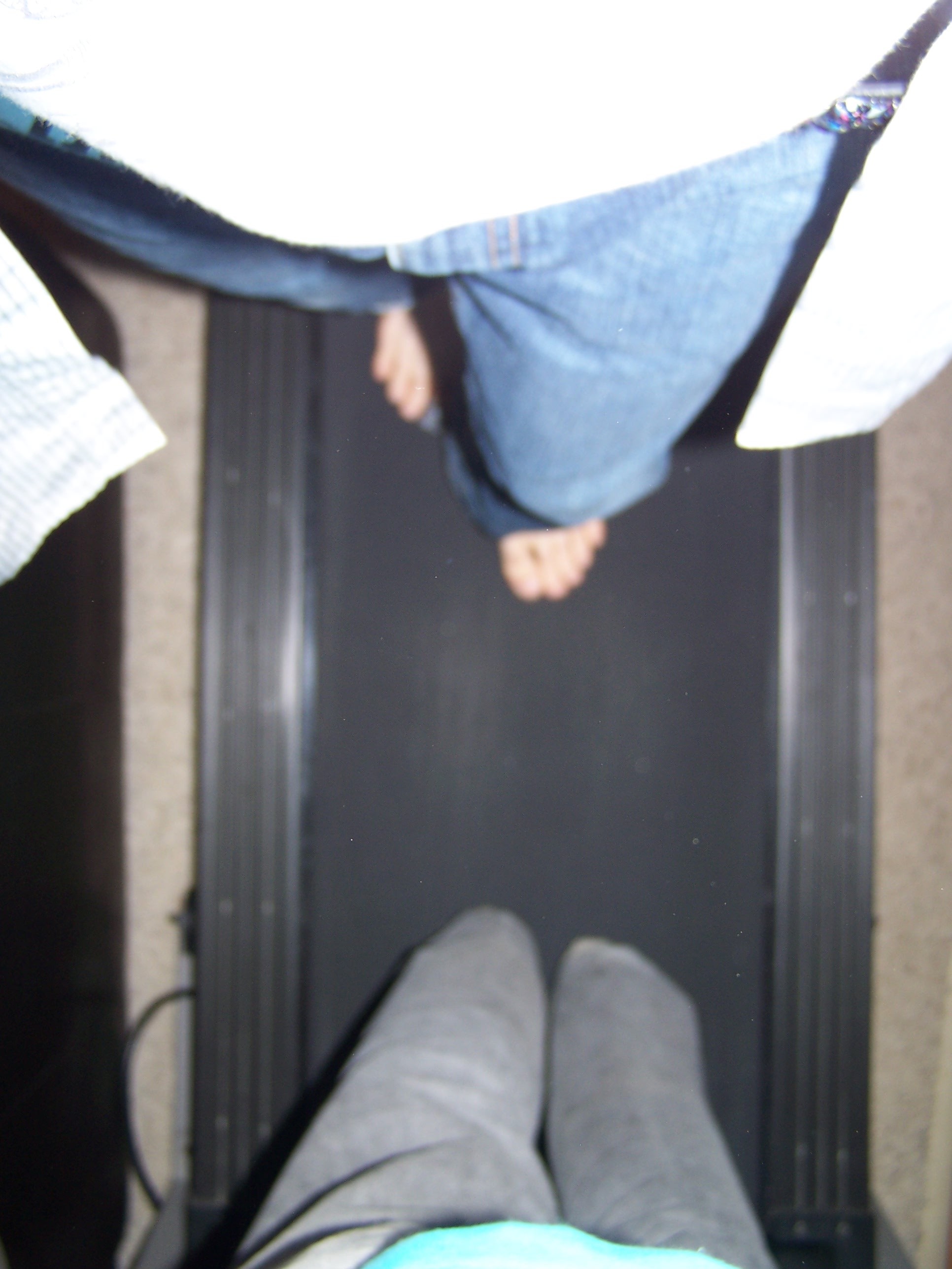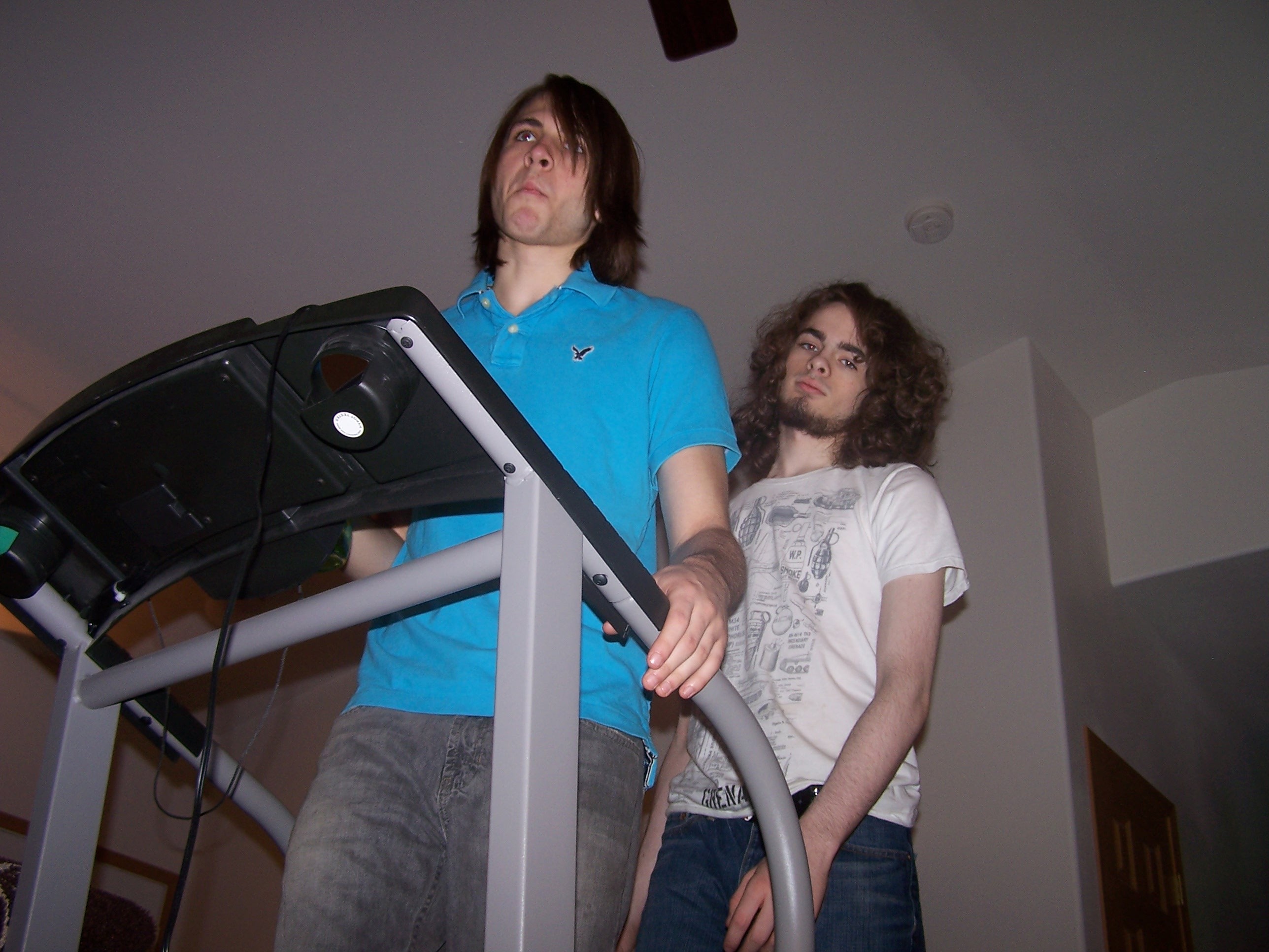 January 19th, 2009 11:02 PMSo, the obvious choice for this task in my mind was a treadmill, as it's probably the straightest line of all. No obstacles as well. I figured i may as well make it continuous, so the following walk was taken without any breaks. Six continuous hours of walking at about .7 mph. But who wants to journey on their own, so i asked my good friend Brian if he'd like to accompany me.