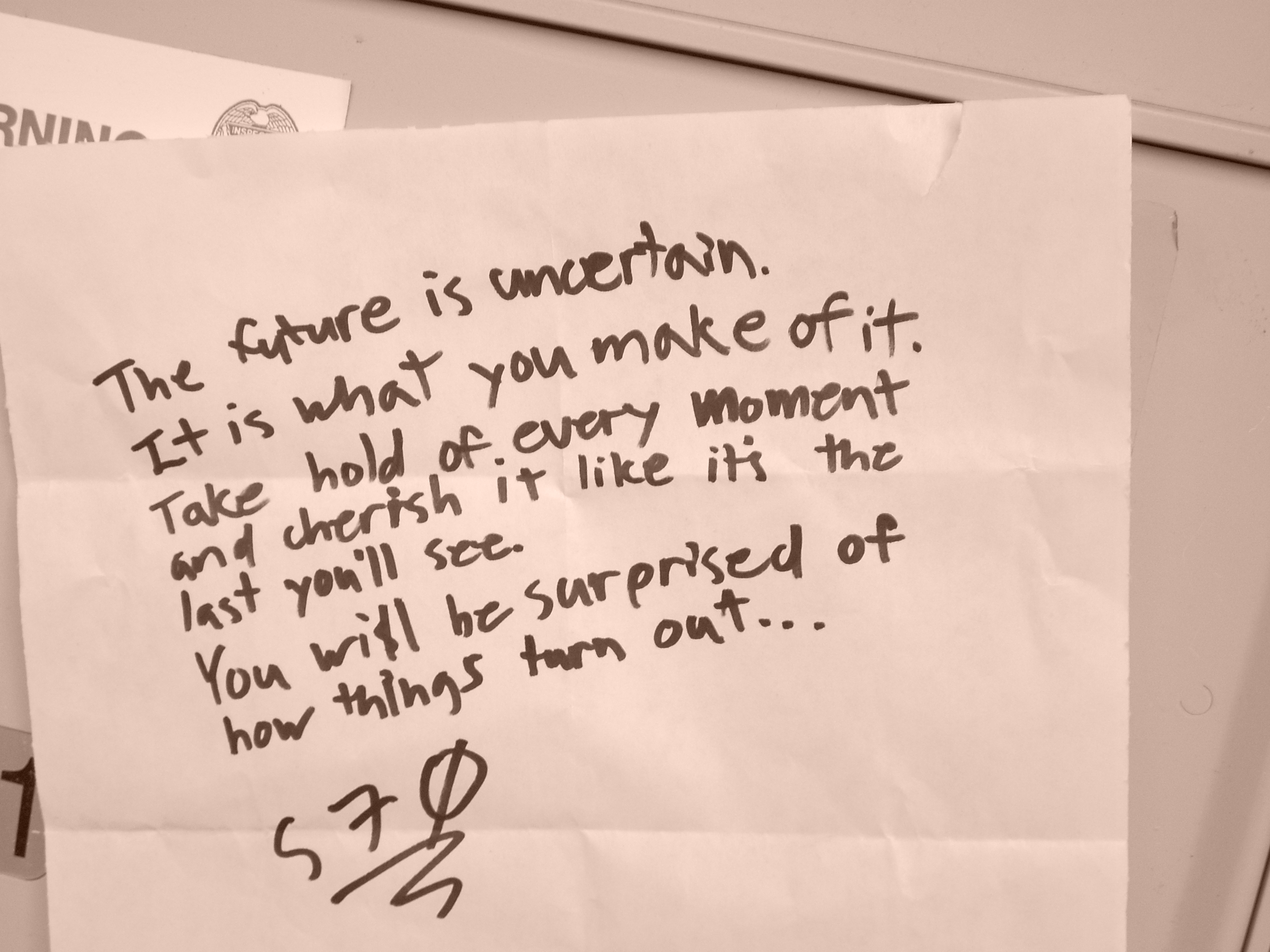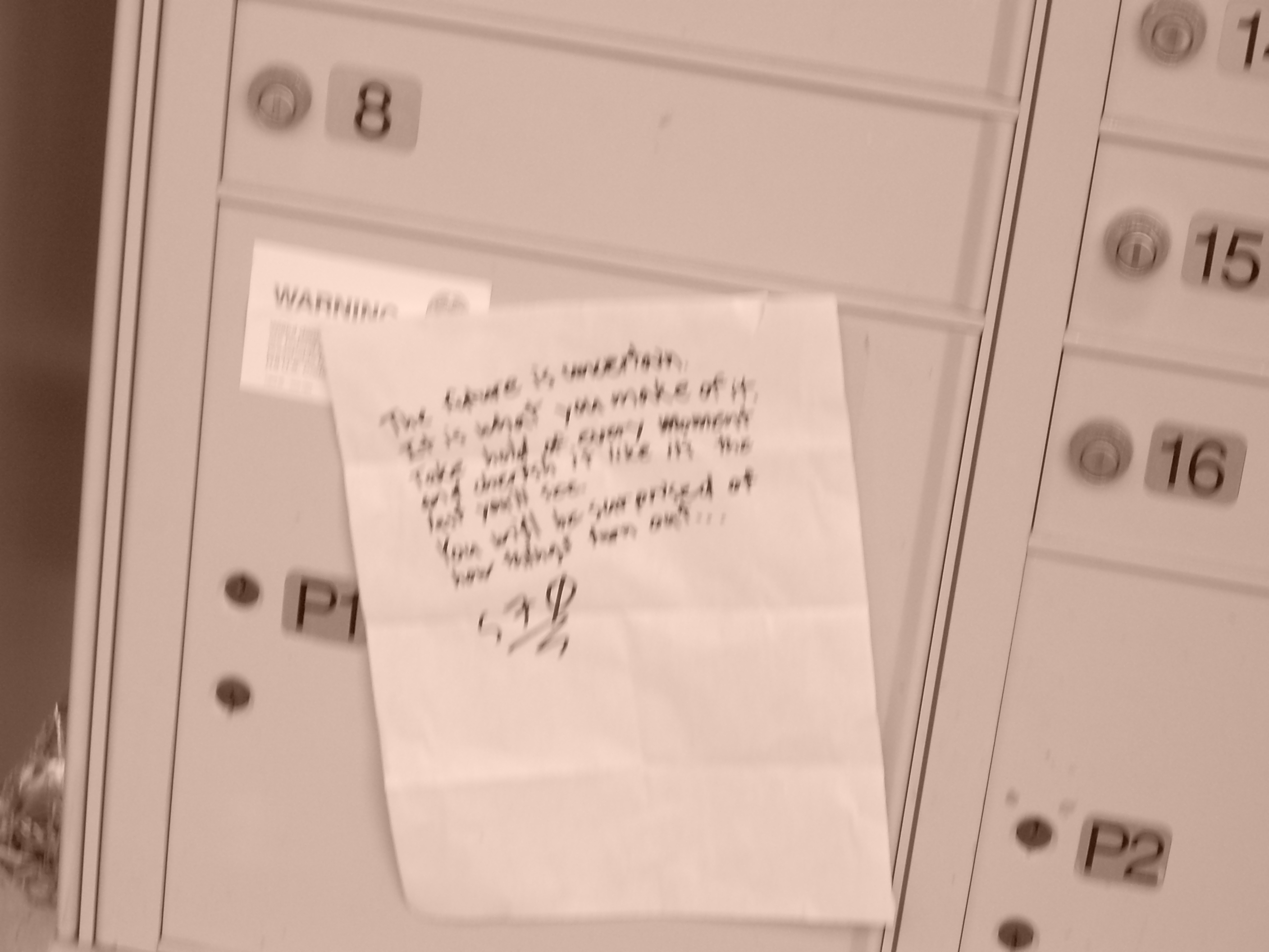 I placed the fortune on the front of the package pick up locker in plain sight of any one checking their mail.