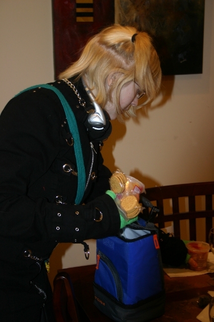 We set up as soon as Helen left and we knew she wasn't coming back. This time we brought fruit cups, cookies, jerky, and home made egg mcmuffins, which were amazing.
